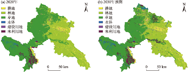 表3 2020年土地利用现状与2030年预测面积Tab. 3 Current land use in 2020 and projected area in 2030 |