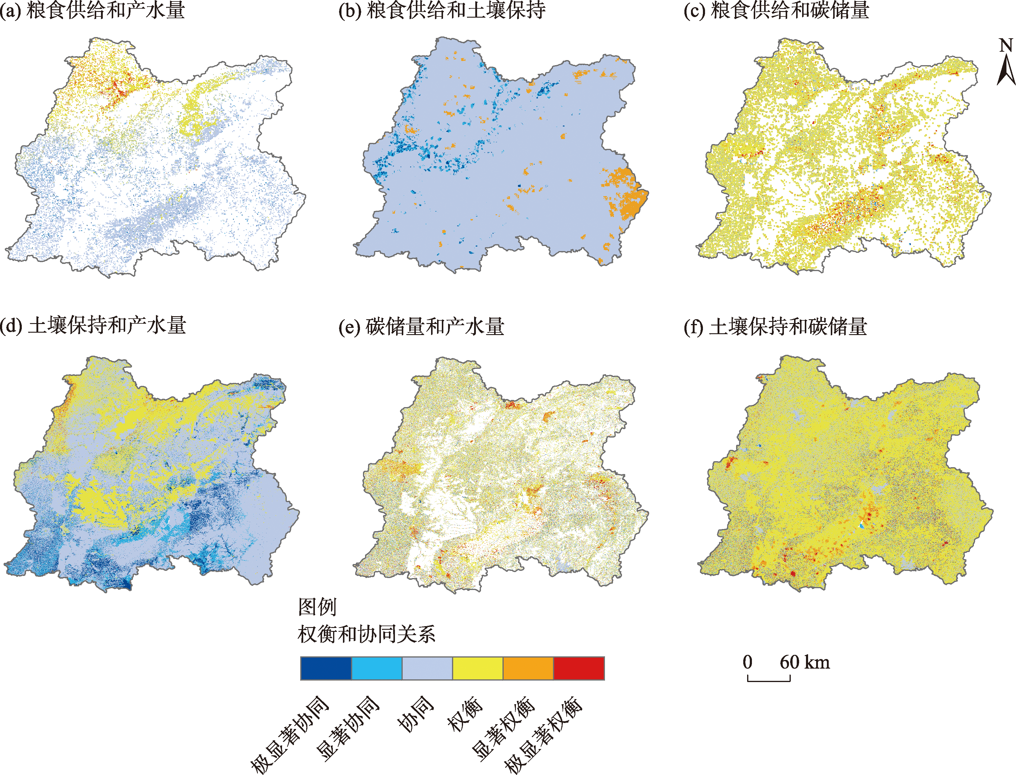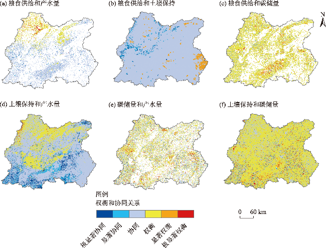 表2 生态系统服务权衡/协同关系的相关系数Tab. 2 Correlation coefficient of ecosystem services trade-offs/synergies |
