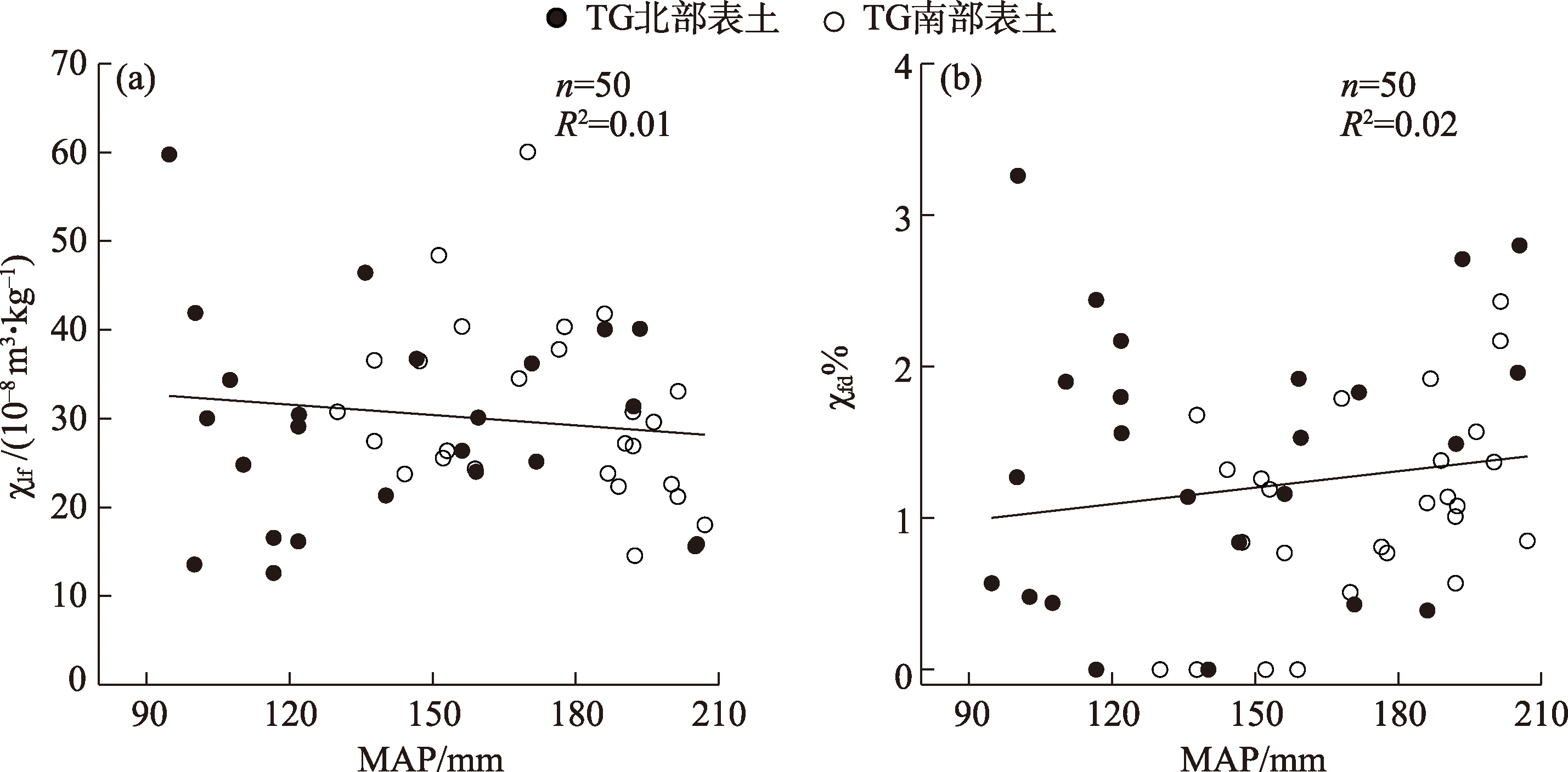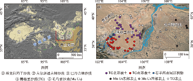 解析磁化率指标在干旱区沉积物中的指示意义对理解干旱区过去降水历史和粉尘物源变化具有重要意义。然而,干旱区表土磁化率变化指示降水还是物源仍存争议。腾格里沙漠位于季风边缘区,已开展了丰富的物源工作,是研究沙漠表土磁化率指示意义的理想区域。本文采集了腾格里沙漠大范围表土和石羊河表层沉积物样品开展研究。结果显示:腾格里沙漠表土磁化率、百分比频率磁化率与降水相关性较低(R2=0.01和R2=0.02),不能指示降水变化。结合前人结果综合分析发现,沙漠表土磁化率的空间差异较大时,具有反映物源变化潜力;沙漠表土磁化率空间变化较小时,不能有效区分物源。在干旱区开展气候环境研究时,应用单一磁化率指标解释物源和环境变化时需充分考虑其多解性。