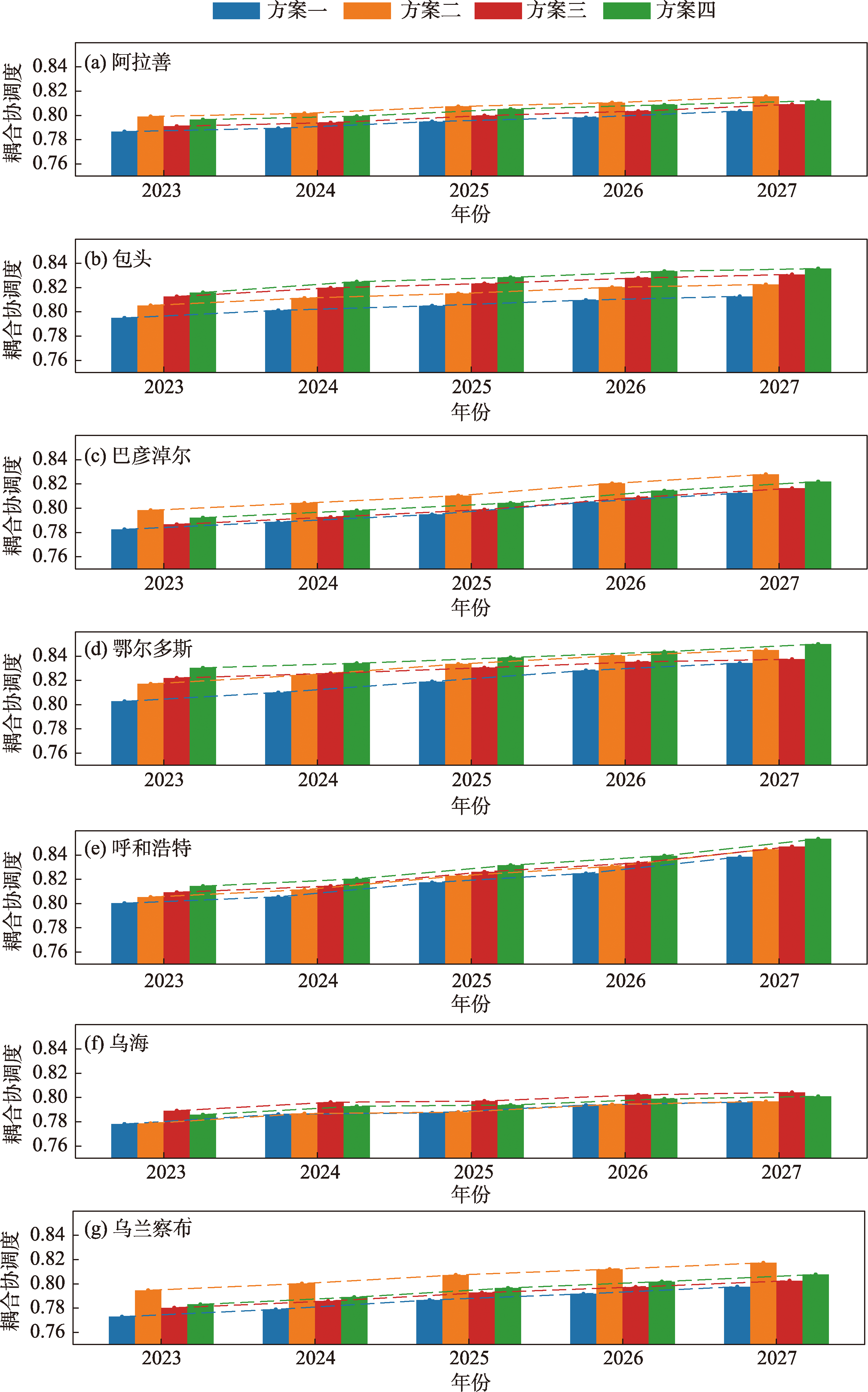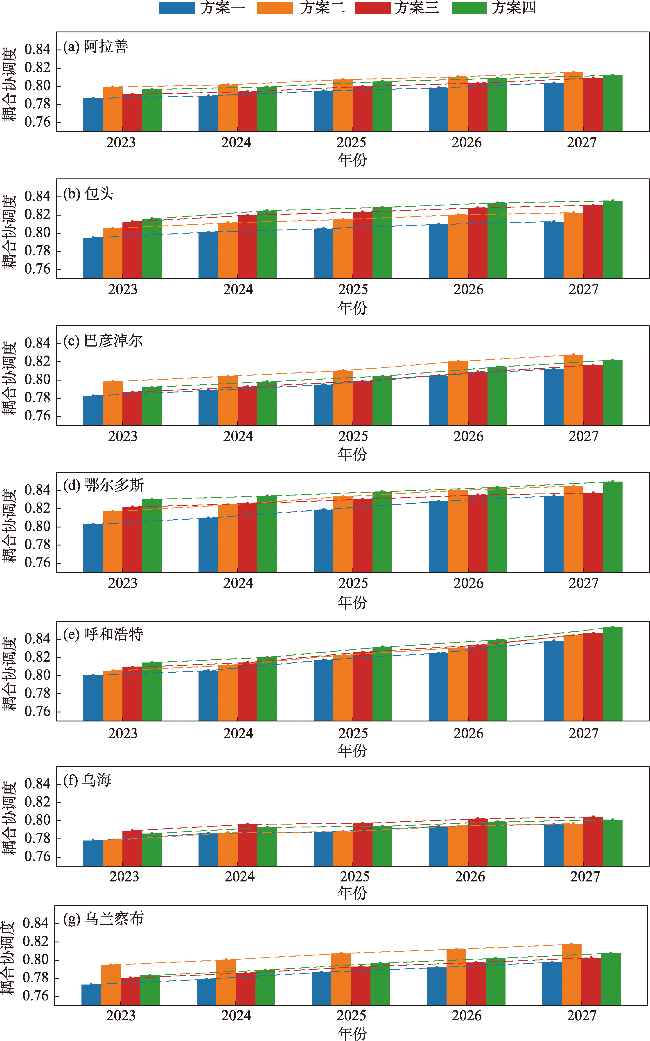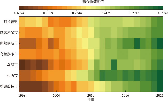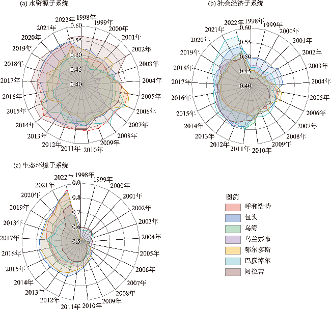 随着经济和社会的高速发展,人类活动同自然环境之间的竞争显著增强,在社会发展与环境保护之间如何抉择成为重要问题。首先,本文构建水资源-社会经济-生态环境复合系统耦合协调度模型,明晰黄河流域内蒙古段1998—2022年系统协调发展状况,其次,利用改进LSTM(Long Short-Term Merory)模型基于四种综合调控方案对系统未来5 a发展情况进行预测。结果表明:(1) 黄河流域内蒙古段各盟市的水资源、社会经济、生态环境子系统评价指数分布区间分别为[0.47~0.57]、[0.47~0.87]、[0.42~0.58],表明区域水资源、生态环境子系统整体协调状况处于中等水平,社会经济子系统虽相对较高但仍有发展空间。(2) 黄河流域内蒙古段各盟市水资源-社会经济-生态环境系统耦合协调度发展在0.67~0.80之间呈逐步上升状态,整体变化幅度为19%。(3) 通过对未来情景预测发现,阿拉善、巴彦淖尔与乌兰察布三盟市采用水资源-社会经济联合调控改善力度最大,乌海市采用社会经济-生态环境联合改善力度最大,包头市、呼和浩特市与鄂尔多斯市采用水资源-生态环境联合调控改善力度最大。