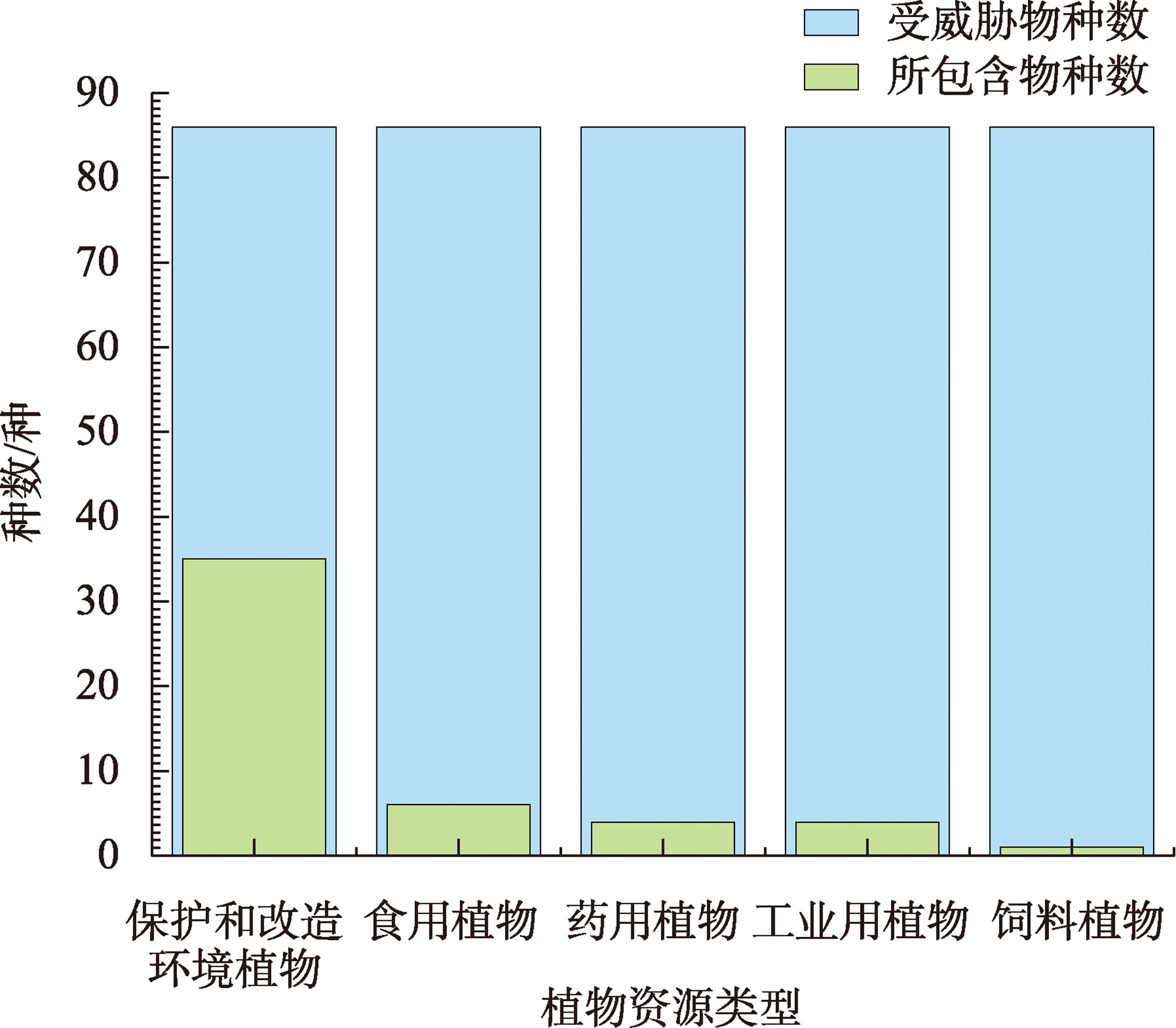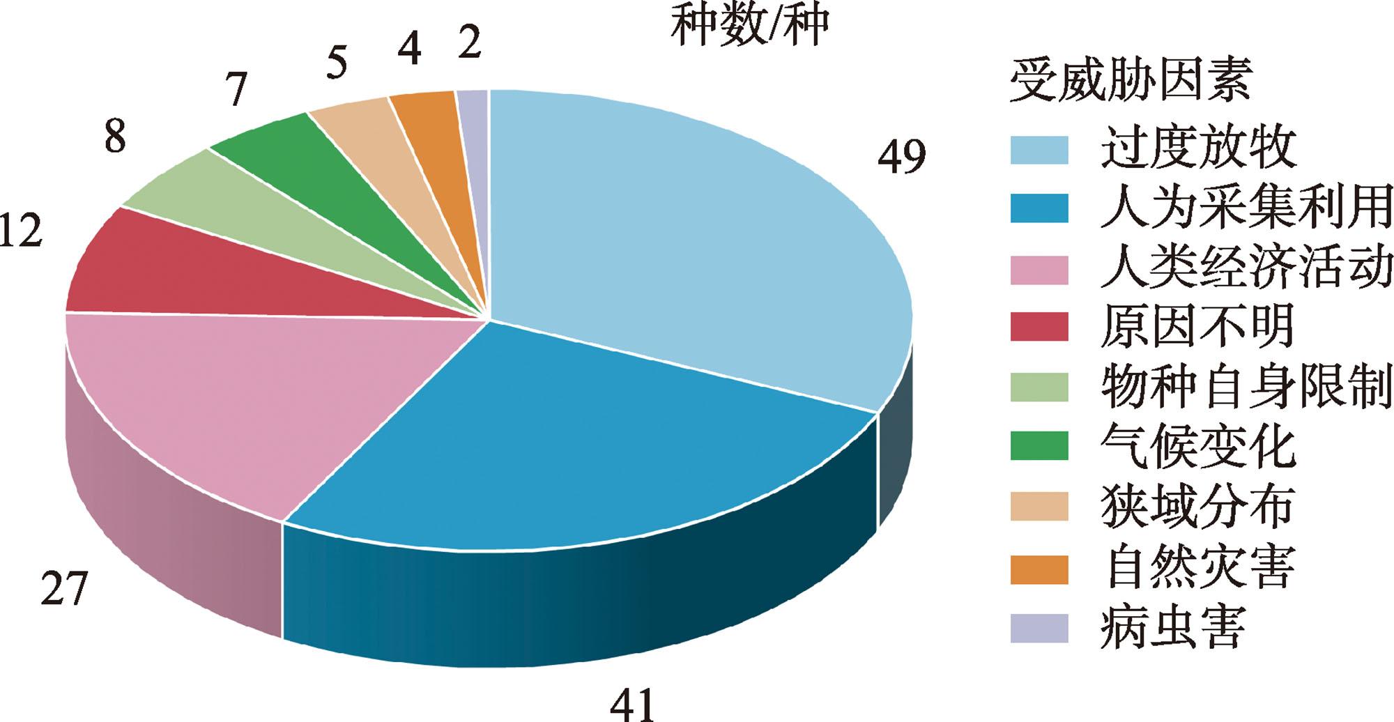 表4 受威胁植物属所含物种数量分类Tab. 4 Classification of the number of species in the threatened plant genera |