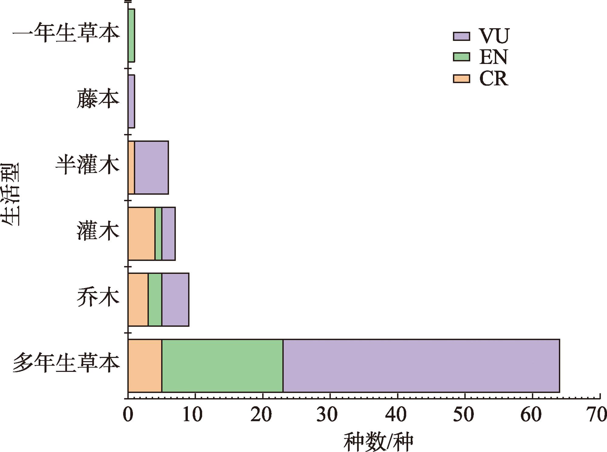 表3 受威胁植物科所含物种数量分类Tab. 3 Classification of the number of species in the threatened plant family |