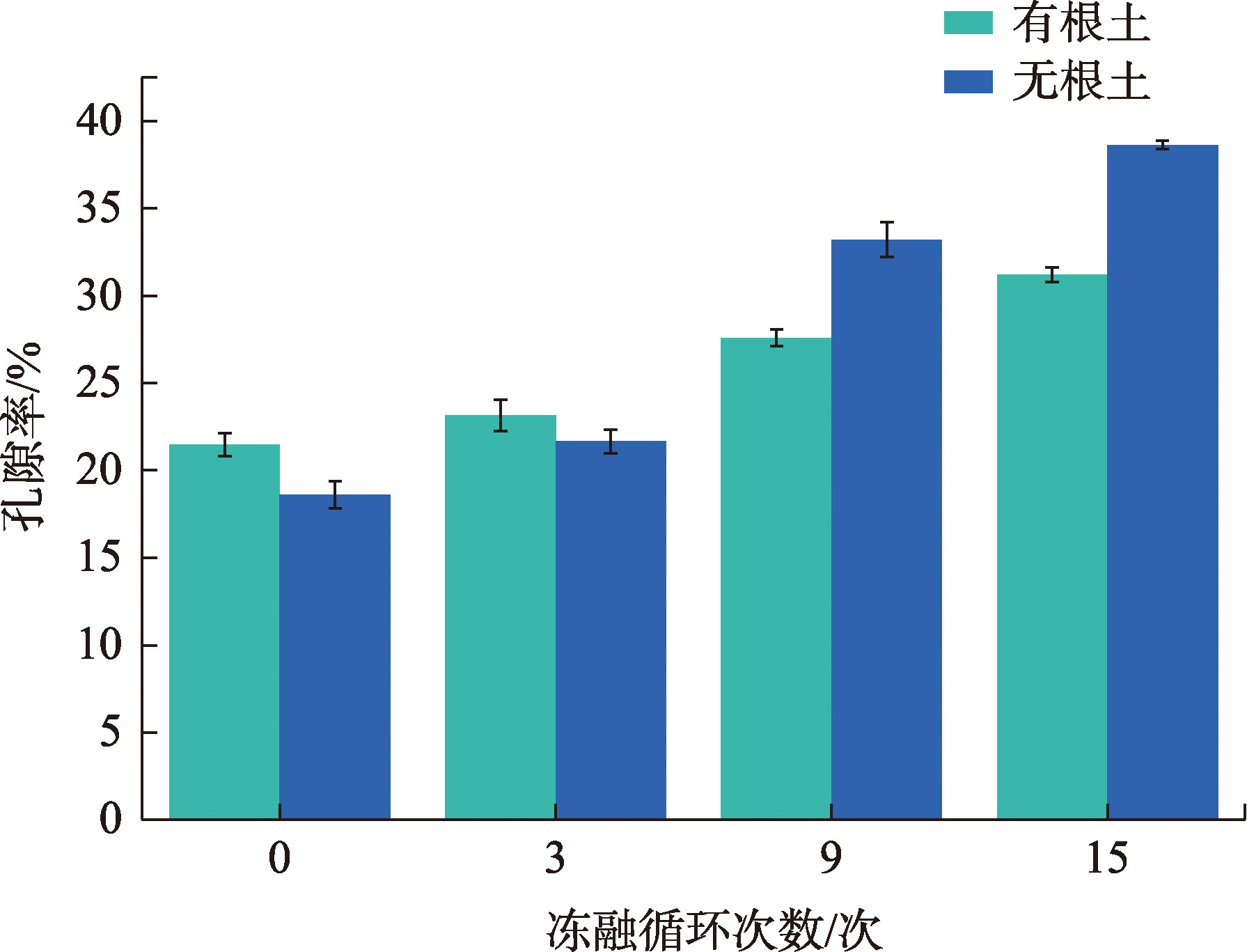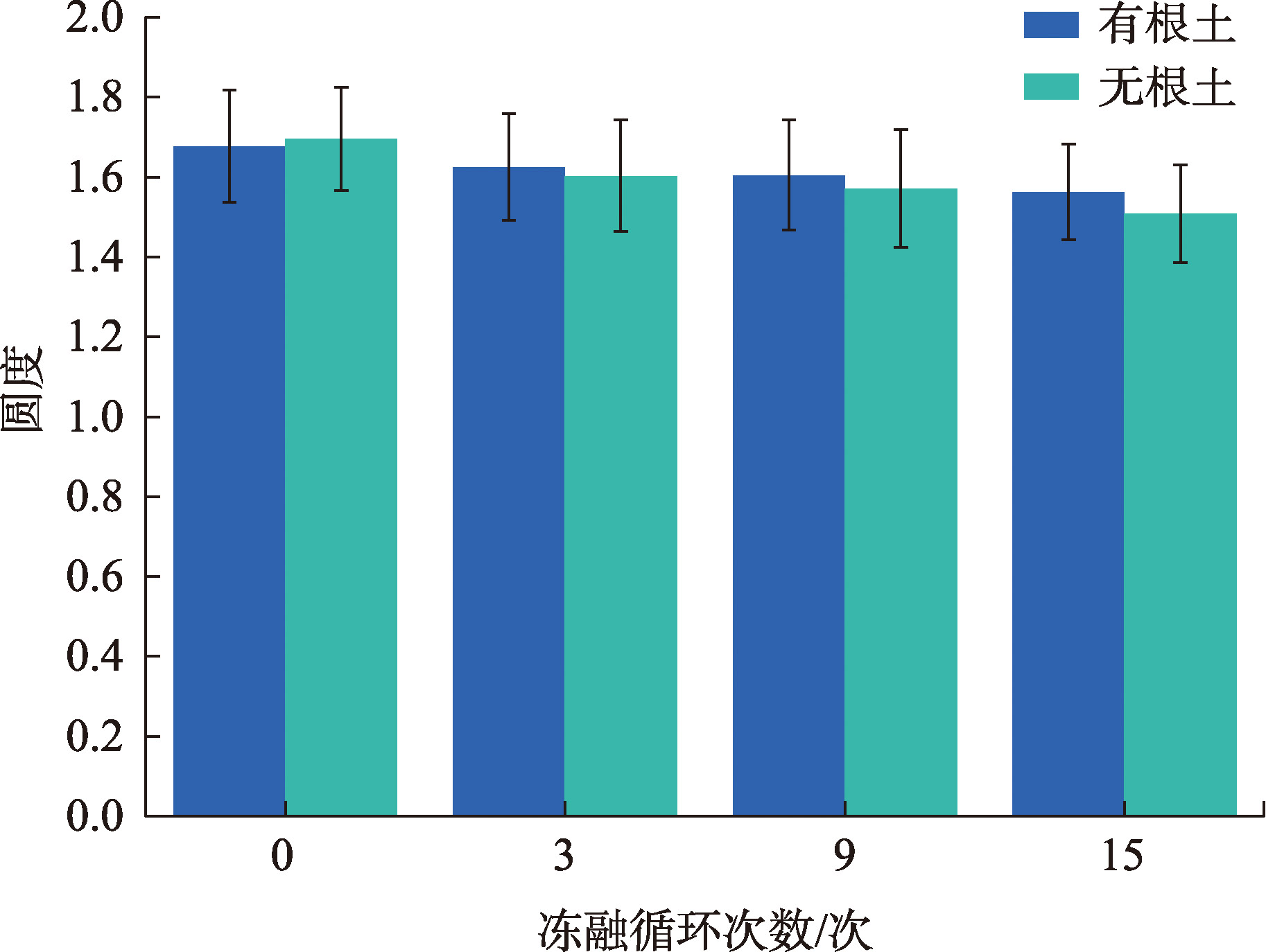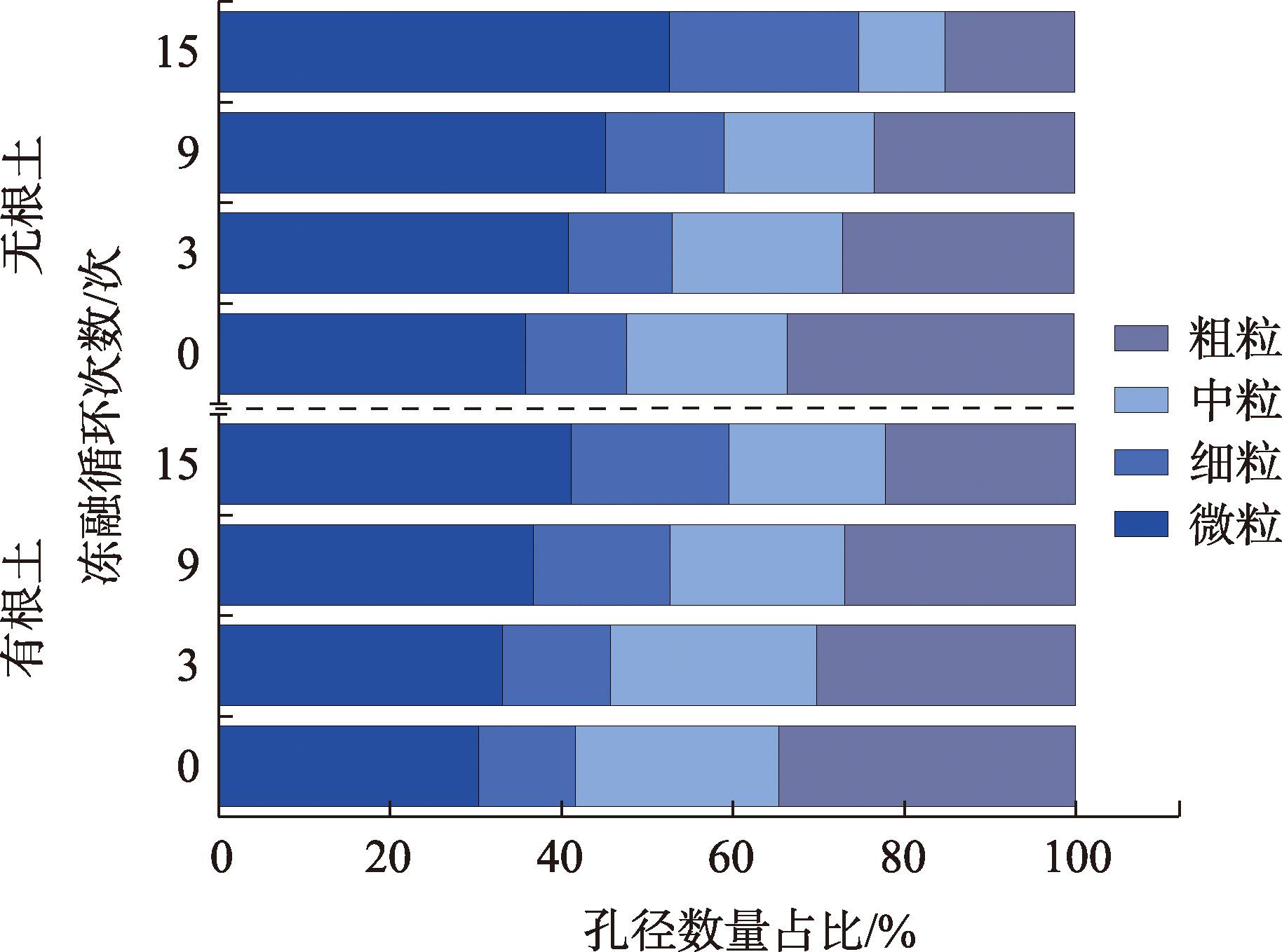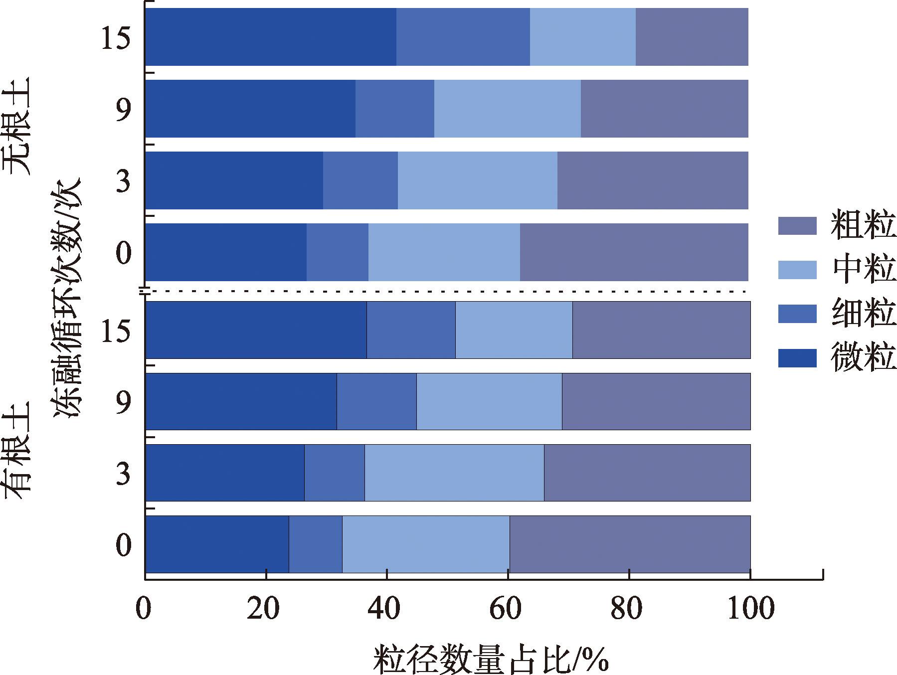 黄河源区曲流河岸有根土在冻融作用下的力学特性直接影响其稳定性与横向演变。通过开展含根量为7%的有根土在冻融条件下的三轴剪切试验,结合微观结构分析,研究了黄河源区高寒草甸河岸带土体在冻融作用下的抗剪特性演变规律,并探讨了草甸根系的调控机制。结果表明:冻融循环15次后土体力学性能显著劣化,无根土主应力差下降30.67%,黏聚力下降25.47%,孔隙率增加20.02%,而有根土主应力差下降仅28%,黏聚力下降5.8%,孔隙率增幅不足10%。微观分析表明,根系通过加筋作用约束颗粒破碎与迁移,并通过锚固效应抑制孔隙扩张,从而减缓冻融损伤。研究揭示了植物根系对土体抗冻融能力的增强机制,为寒区河岸带生态修复与稳定性维护提供了理论依据。