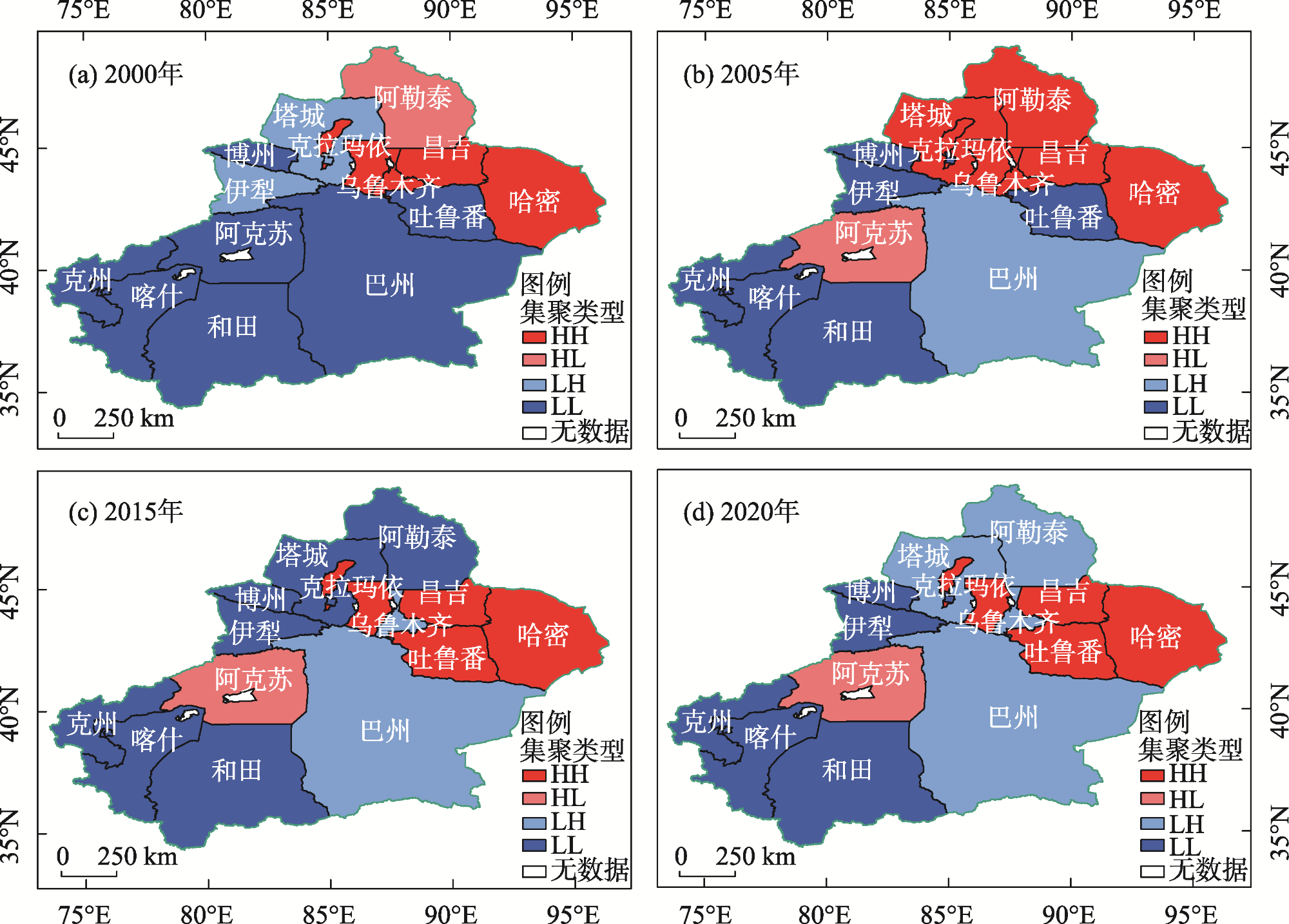 | 时期 | 集聚类型 | HH | LH | LL | HL |
