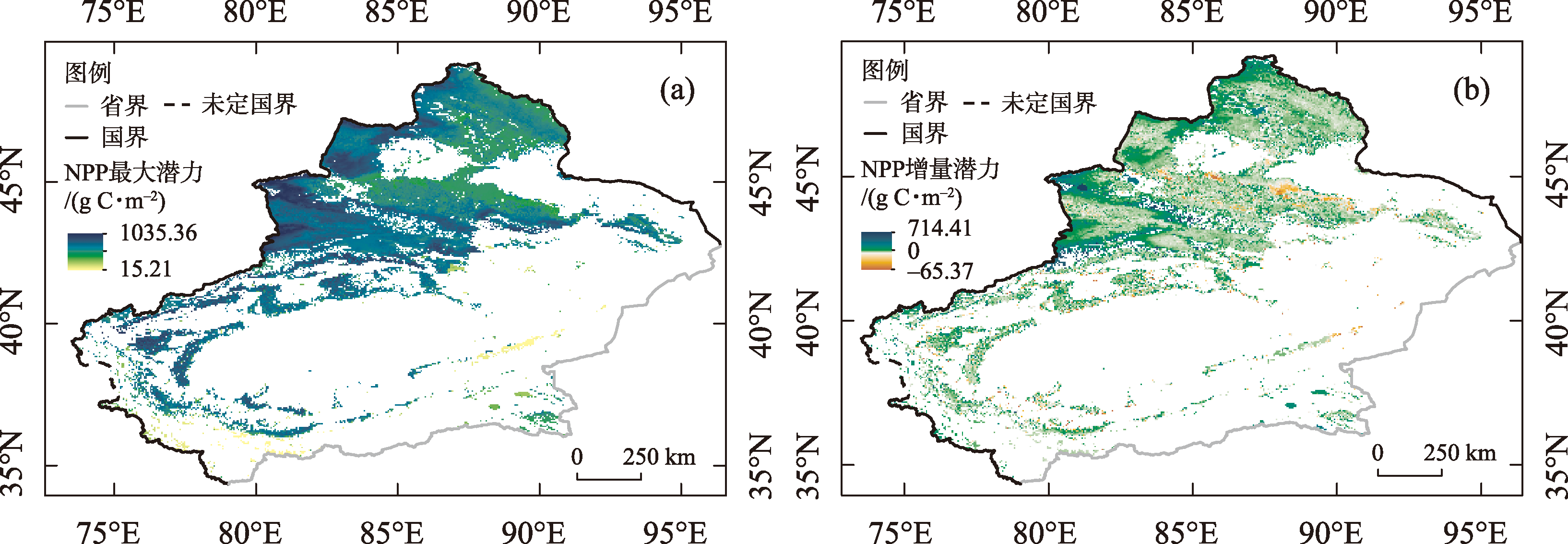 Net Primary Productivity (NPP) is an essential indicator of the terrestrial carbon (C) cycle, which can reflect the carbon sink capacity of terrestrial ecosystems. In the face of China’s “double carbon” goal of “carbon peak” and “carbon neutrality,” improving the carbon sequestration capacity of the terrestrial ecosystems is one of the crucial ways. Due to its vast geographical area and considerable vegetation restoration potential, it is of great practical significance to evaluate the current situation of carbon sequestration in Xinjiang and explore the potential of carbon sequestration so as to respond positively and realize the national “double carbon” goal. This study combined the Carnegie Ames Stanford Approach (CASA) model with the land use, remote sensing, and meteorological (temperature, precipitation, and solar radiation) data, and NPP in Xinjiang from 2001 to 2020 for the simulation. The Sen-MK method was used to analyze the trend in NPP changes. Pearson correlation analysis was used to identify the relationship between NPP variations and climatic factors. Further, different land use and vegetation scenarios from 2001 to 2020, as well as the pattern of NPP variations under pure climate scenarios simulated by the Miami model, were used to derive the final maximum potential of NPP and the maximum increment of NPP in Xinjiang. The results showed that: (1) The NPP in Xinjiang showed an upward trend with fluctuations from 2001 to 2020; (2) Among the climatic factors, precipitation had the maximal impact on NPP in Xinjiang; (3) Among the primary land use types in Xinjiang, cultivated land had a large NPP which showed an increasing trend; (4) The increment potential of NPP in Xinjiang was 79.43 g C·m-2. This study can provide a reference for Xinjiang to respond to the national call for “carbon peak” and “carbon neutrality” and to implement ecological restoration and cultivated land protection measures.