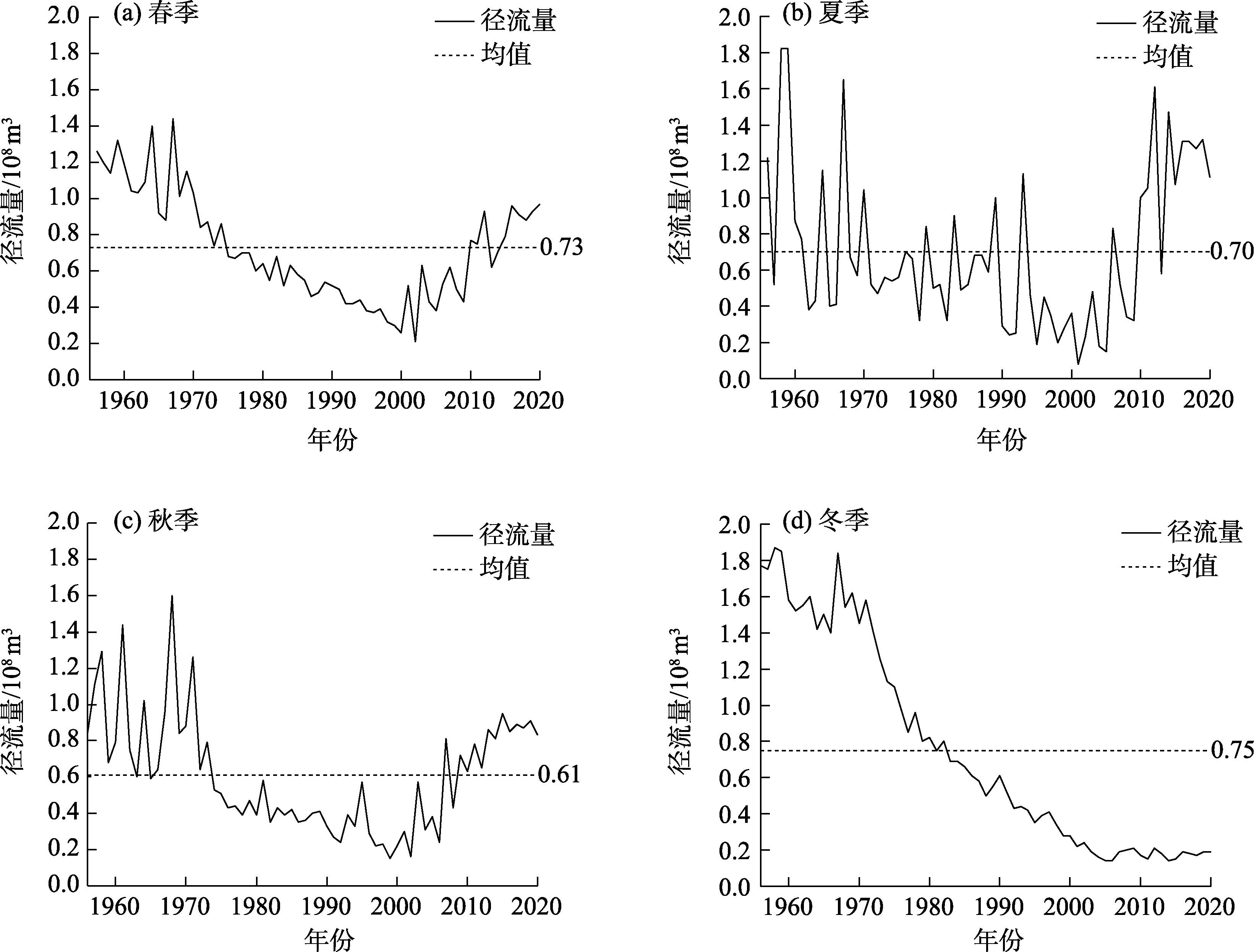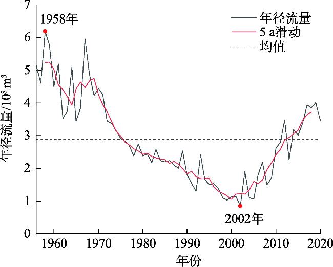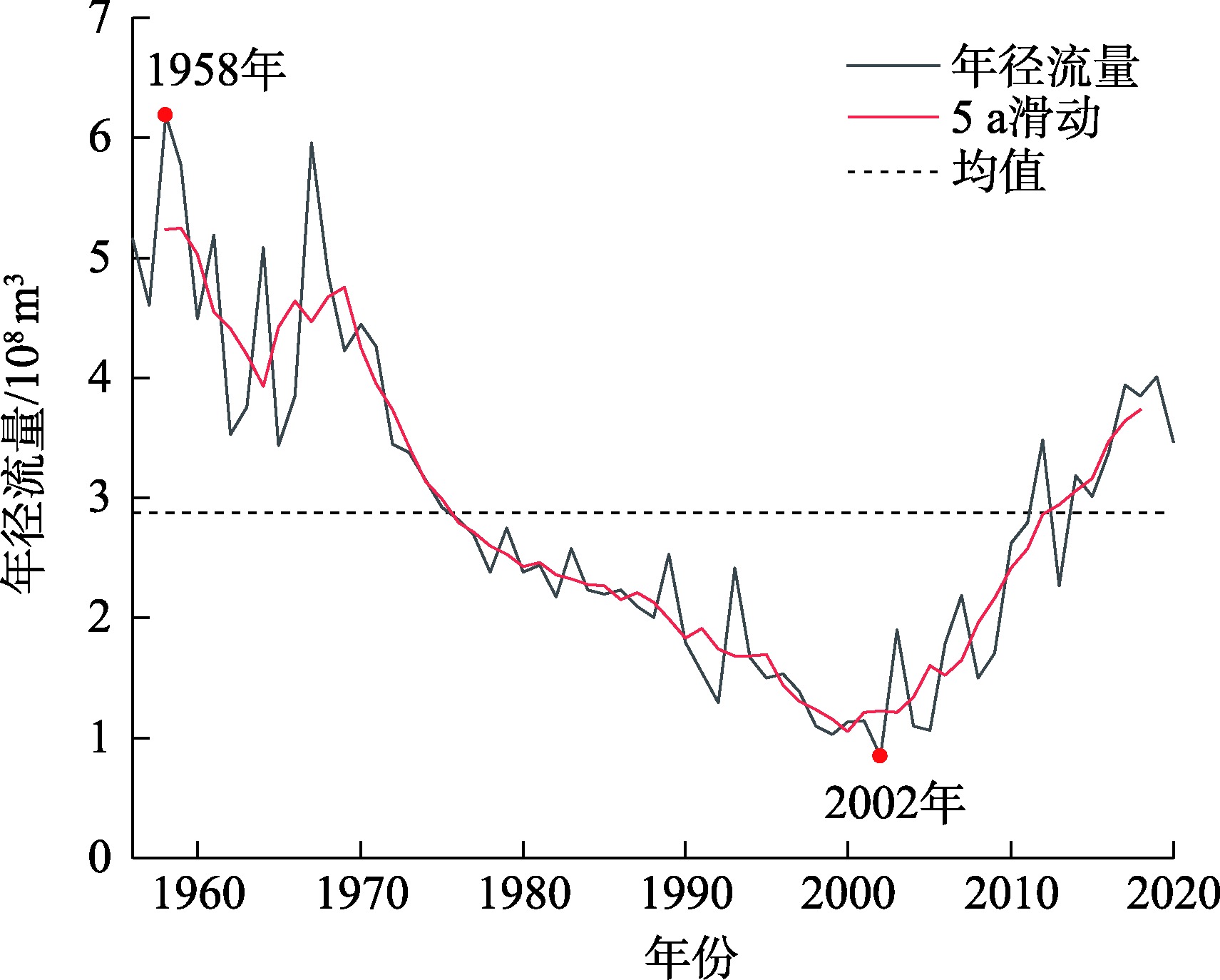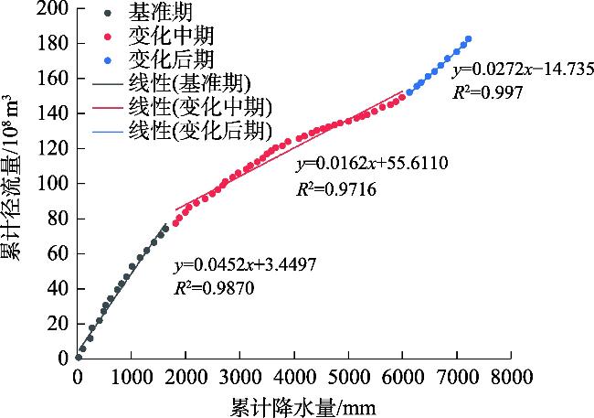 表1 蔡旗站年径流突变前后对比Tab. 1 Comparison before and after the abrupt change in the annual runoff of Caiqi hydrological station |