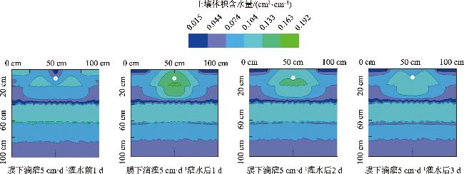 图11 5 cm·d-1滴灌水头下土壤体积含水量空间分布Fig. 11 Spatial distribution of soil volume water content under 5 cm·d-1 drip irrigation head |
