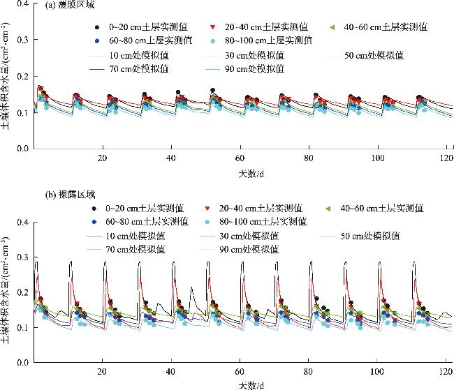 表3 平地覆膜模式下土壤体积含水量实测值描述性统计Tab. 3 Descriptive statistics of measured soil volume water content under flat mulching mode |