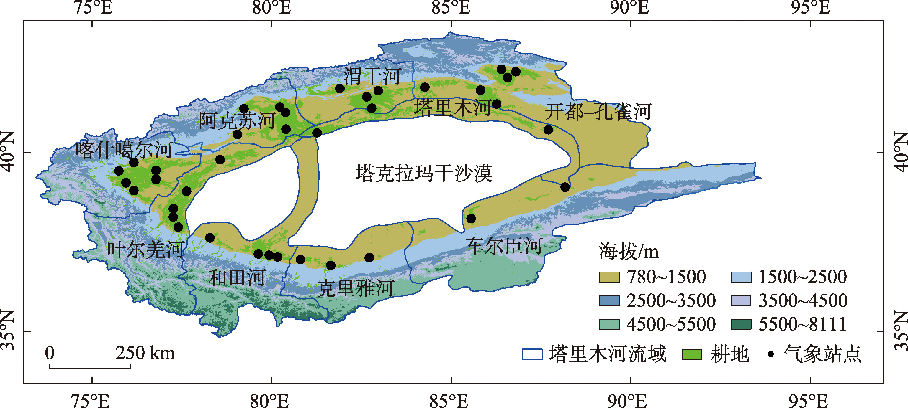 表2 塔里木河流域气象站点信息Tab. 2 Meteorological station information of the Tarim River Basin |