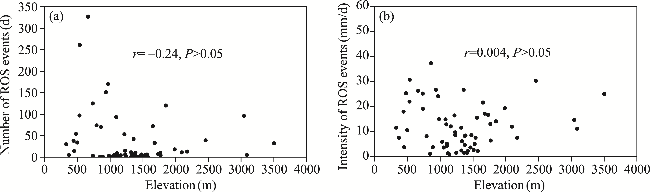 Fig. 12 Impact of elevation on the number of ROS events (a) and the intensity of ROS events (b) in the ARNC |