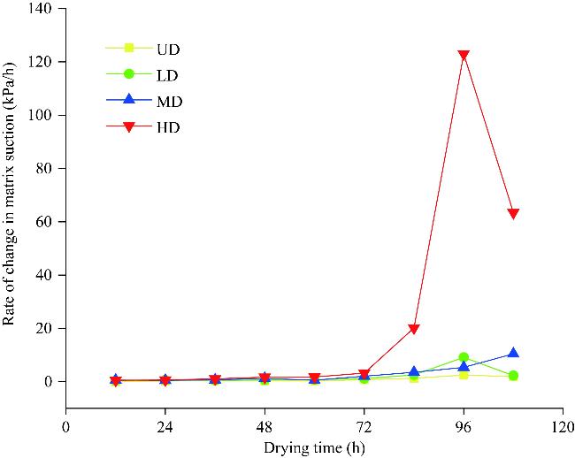 Fig. 9 Rate of change in matrix suction of root-soil composites with different degrees of degradation |