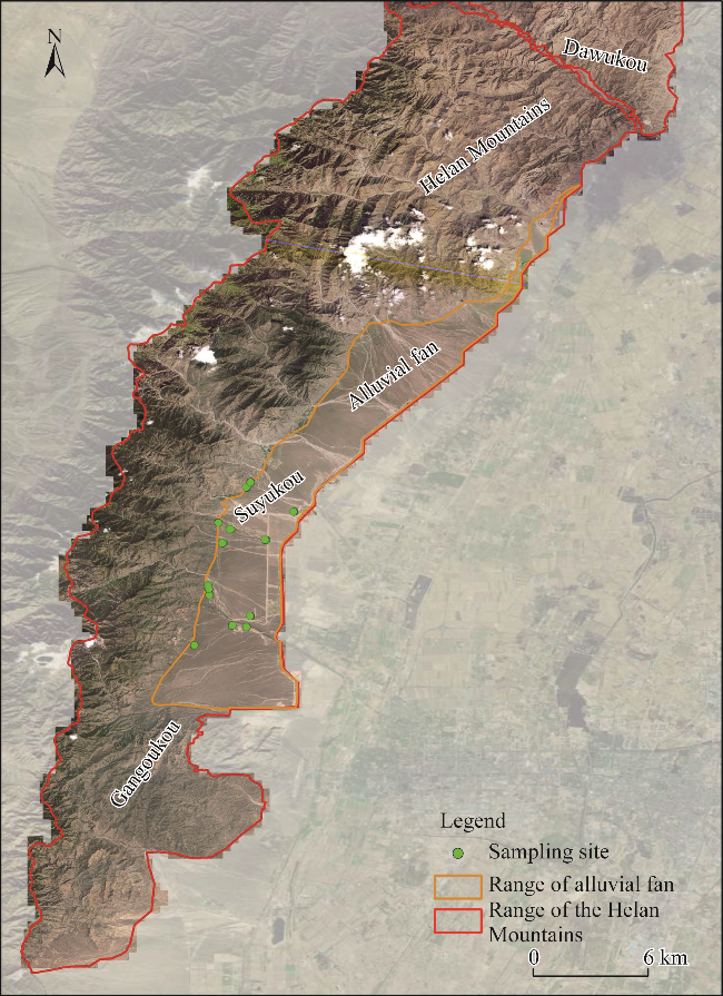 Fig. 1 Alluvial fan and sampling sites in the Helan Mountains |