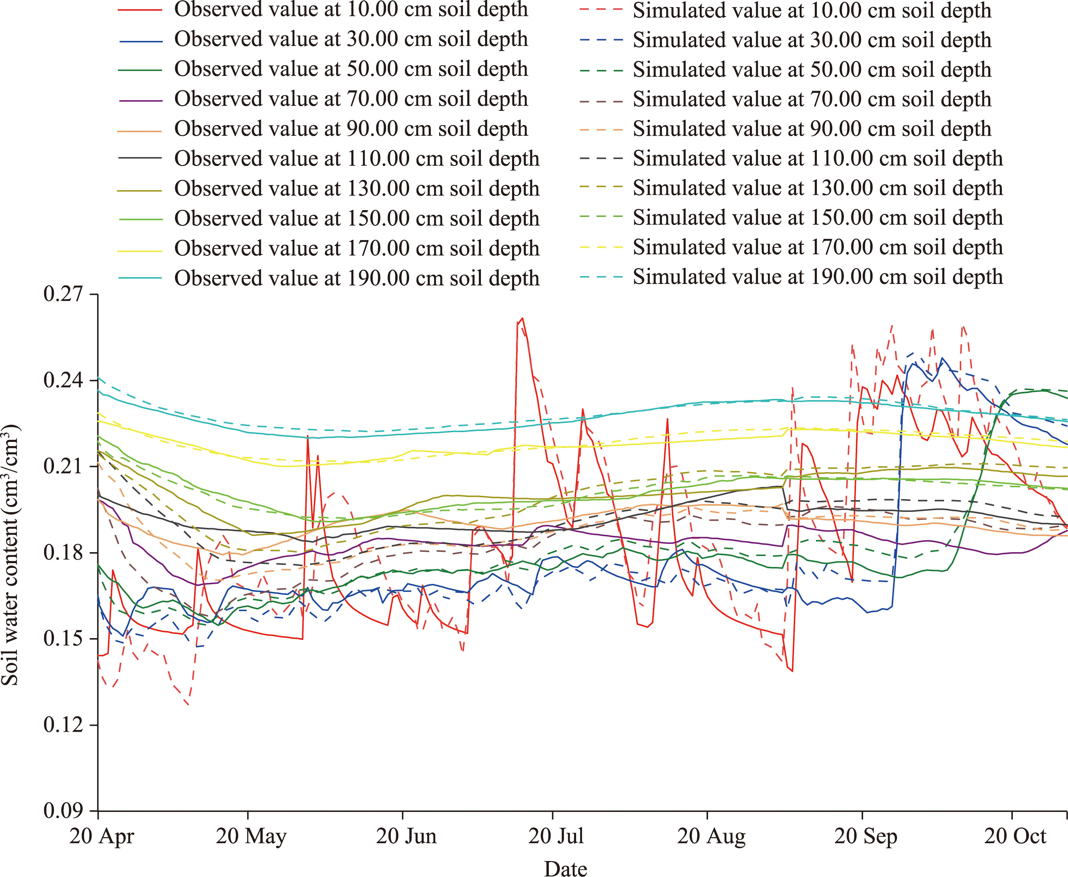 Fig. 2 Comparison of simulated and observed values of soil water content |