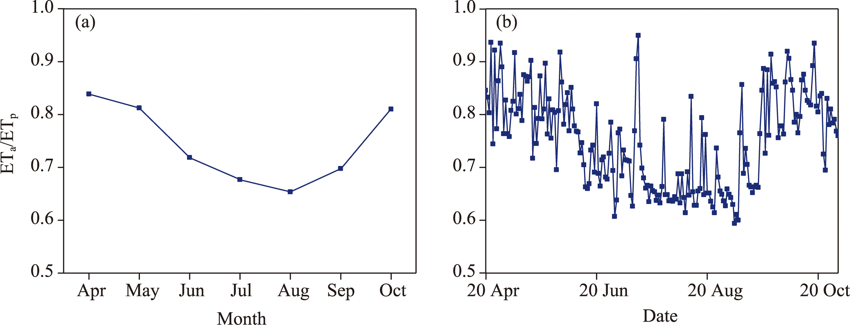 Fig. 7 Variation of ETa/ETp on the monthly (a) and daily (b) scales |