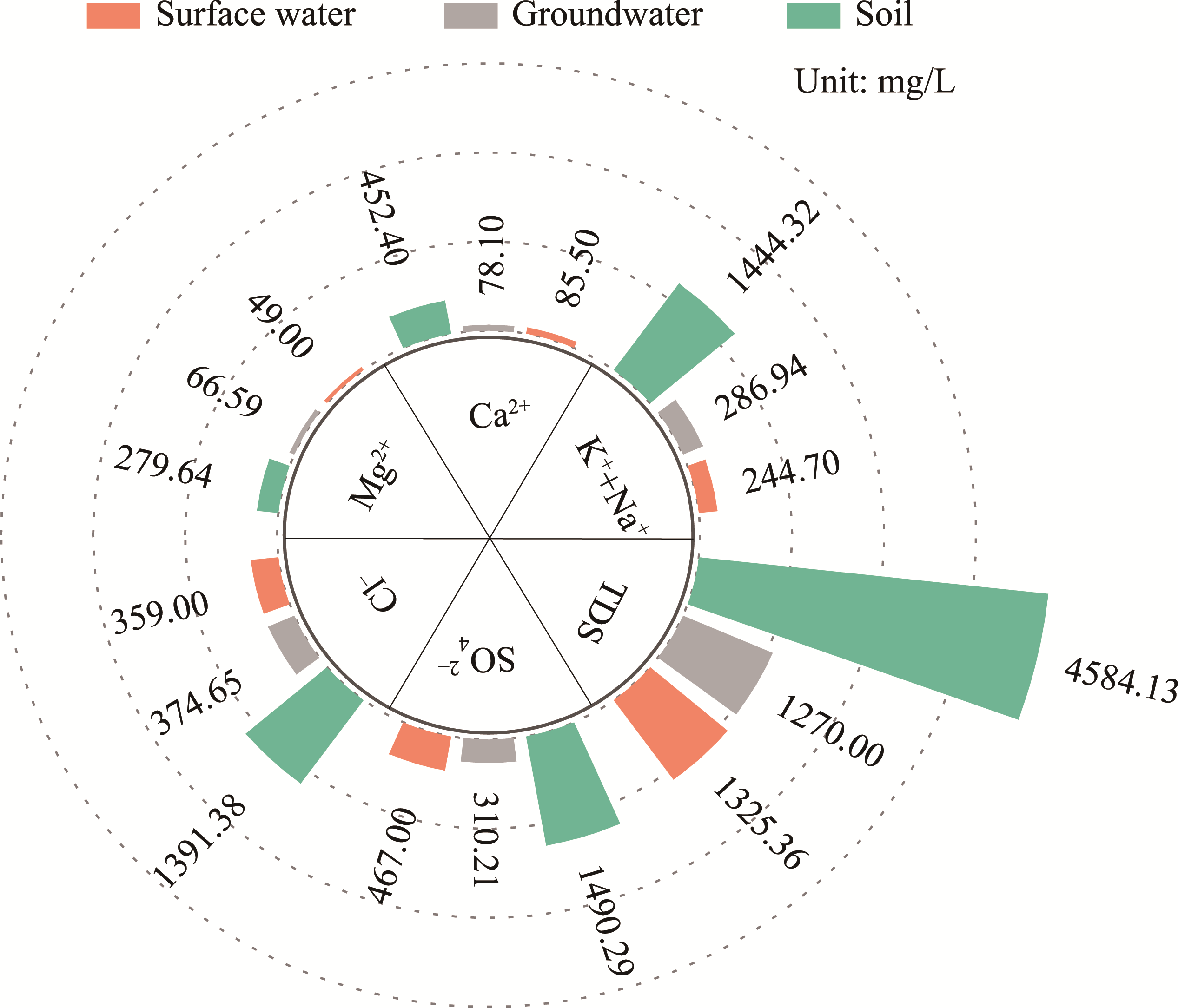 Fig. 10 Ion content of water and soil in the Yurungqash and Qaraqash river basins |
