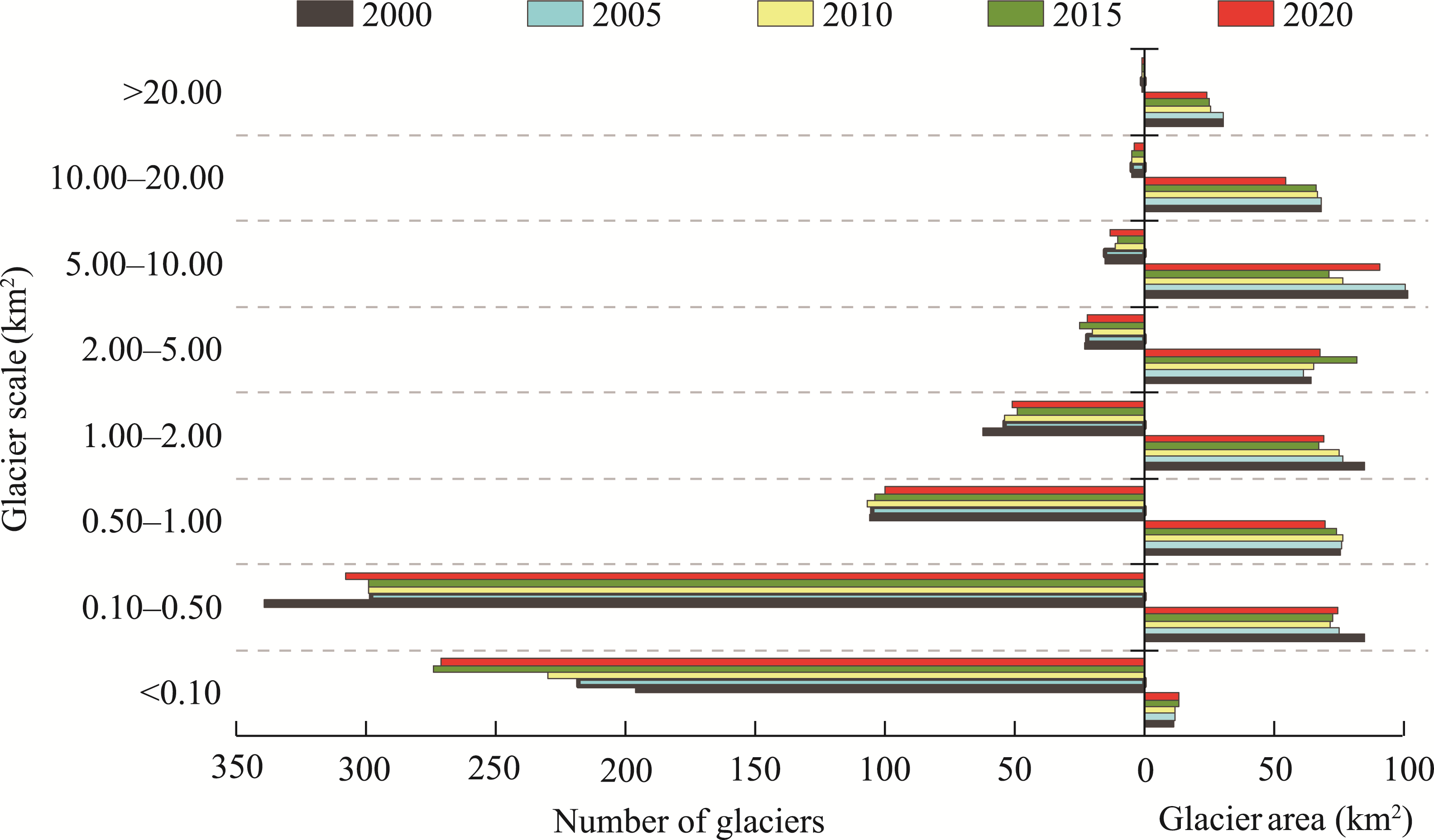 Table 2 Distribution and variation of glaciers in the Manas River Basin from 2000 to 2020 |