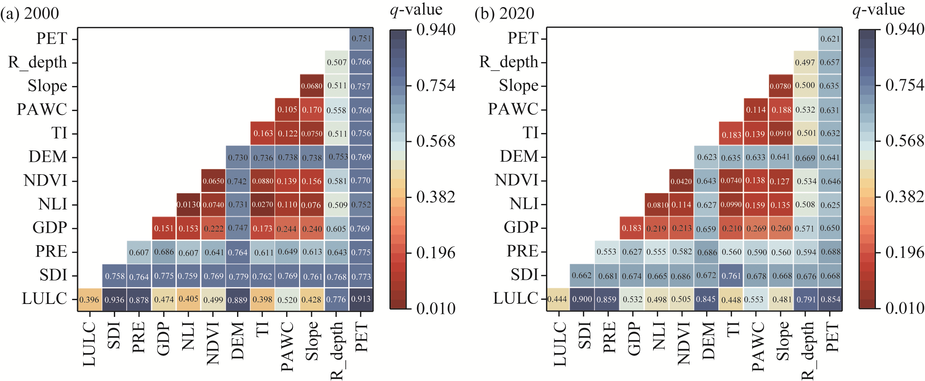 Table 6 Explanatory power (q) of driving factors concerning the spatial differentiation of water conservation in the Huangshui River Basin in 2000 and 2020 |