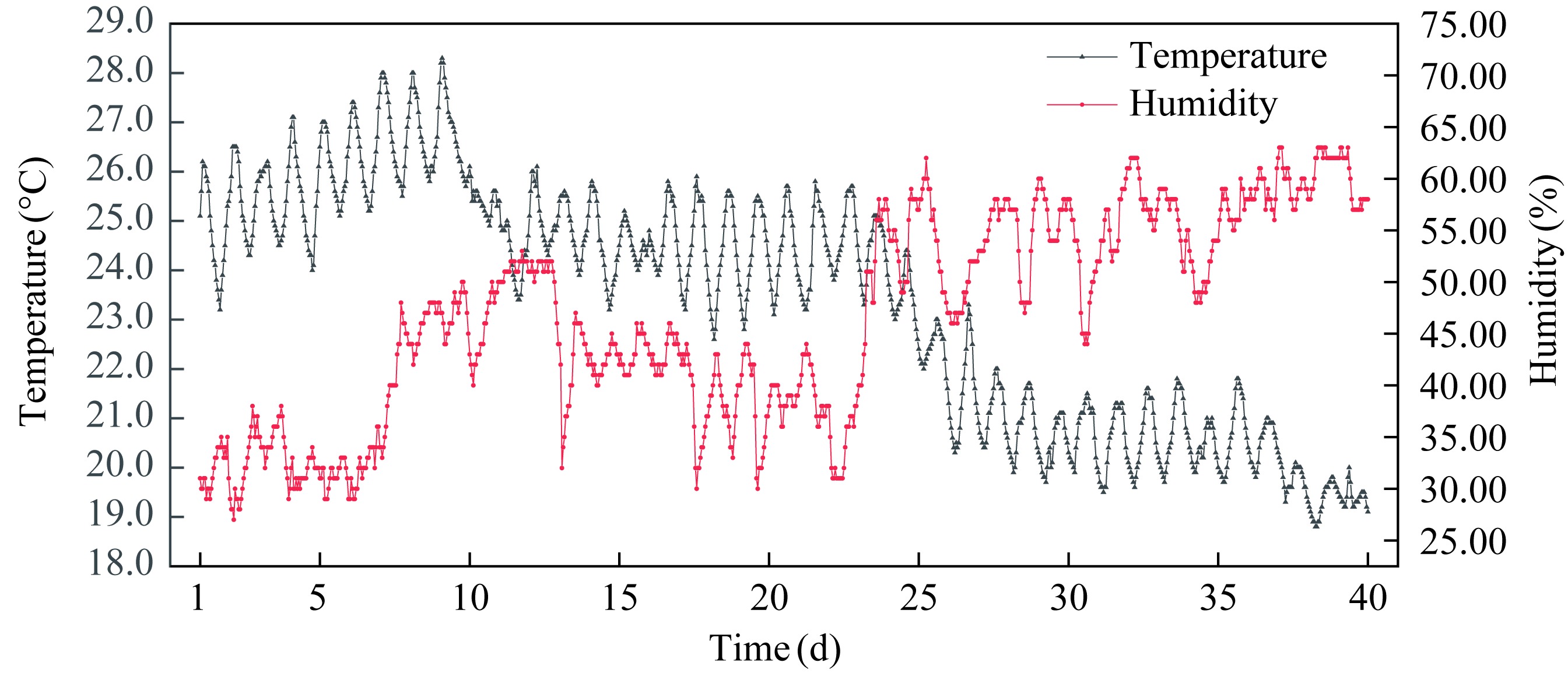 Fig. 3 Changes in air temperature and humidity over time |