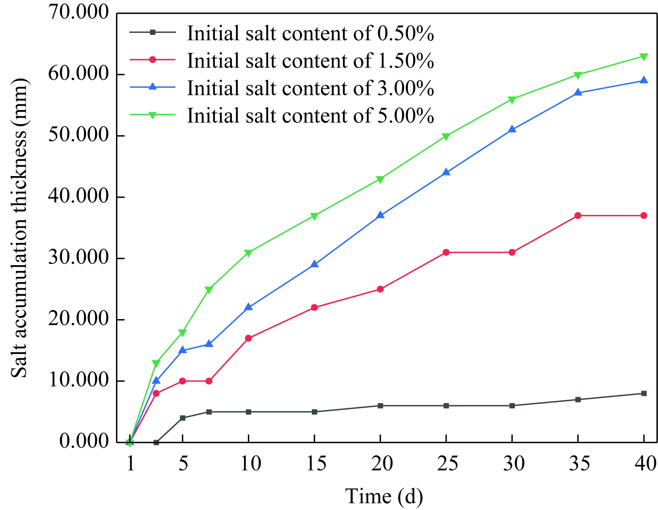 | Soil column serial number | Initial salt content (%) | Sampling date (d) |