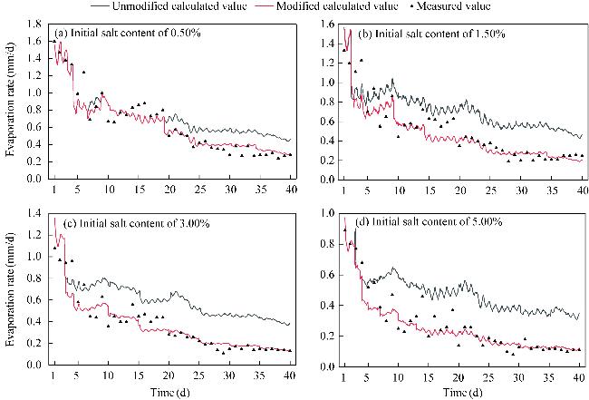 Table 5 Decrease degree of the evaporation rate of the soil columns with different initial salt contents compared with that of the 0.00% salt content column |