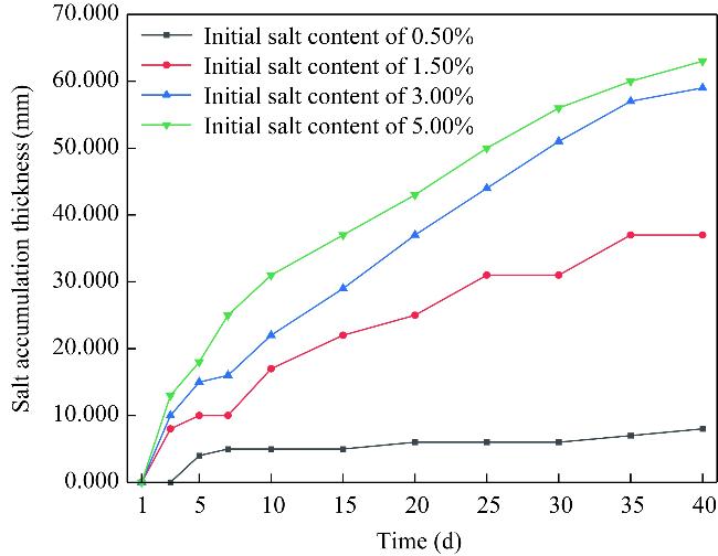 Fig. 6 Thickness of salt accumulation on the soil column surface |