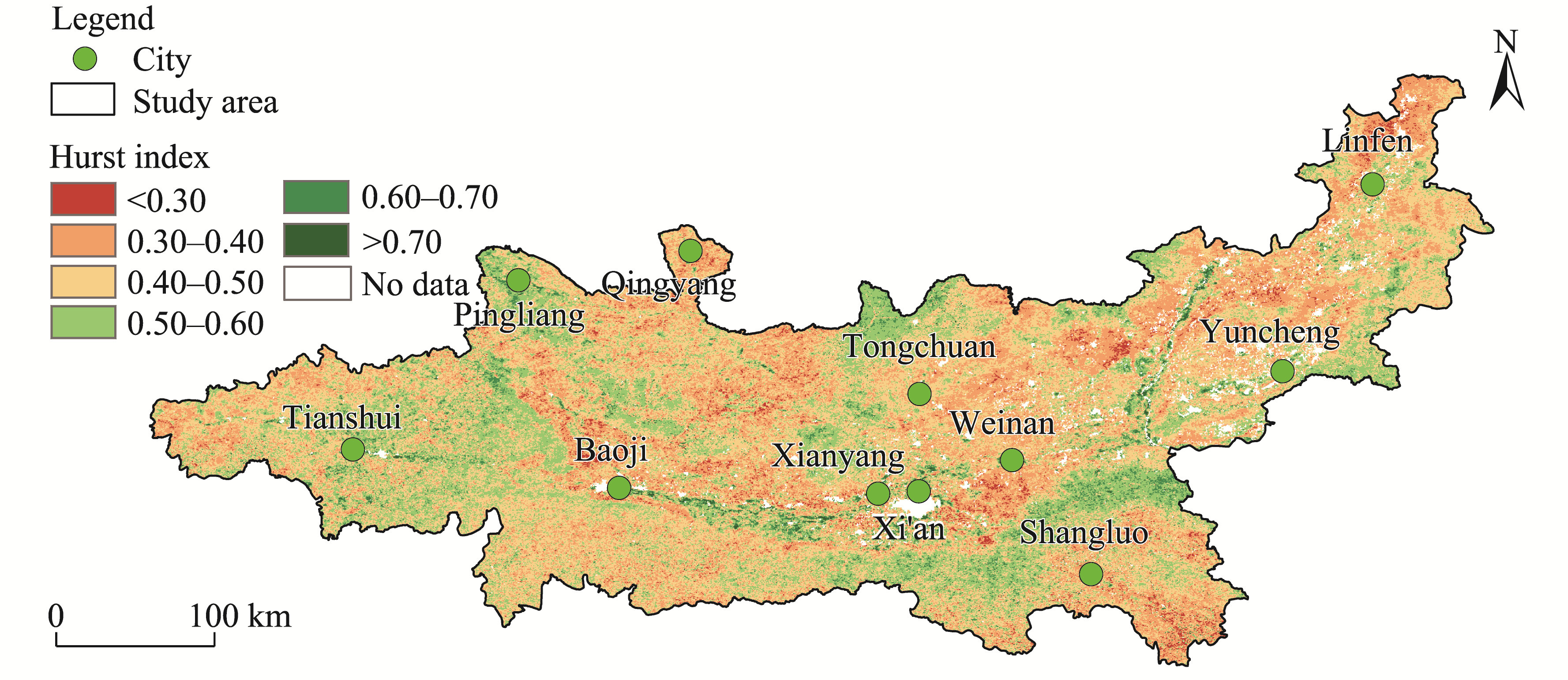 Fig. 9 Spatial variation in Hurst index in the GPUA during 2001-2020 |