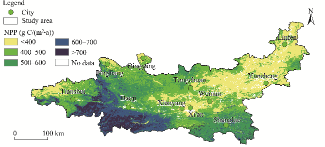 Fig. 6 Spatial variation in multi-year average NPP in the GPUA during 2001-2020 |