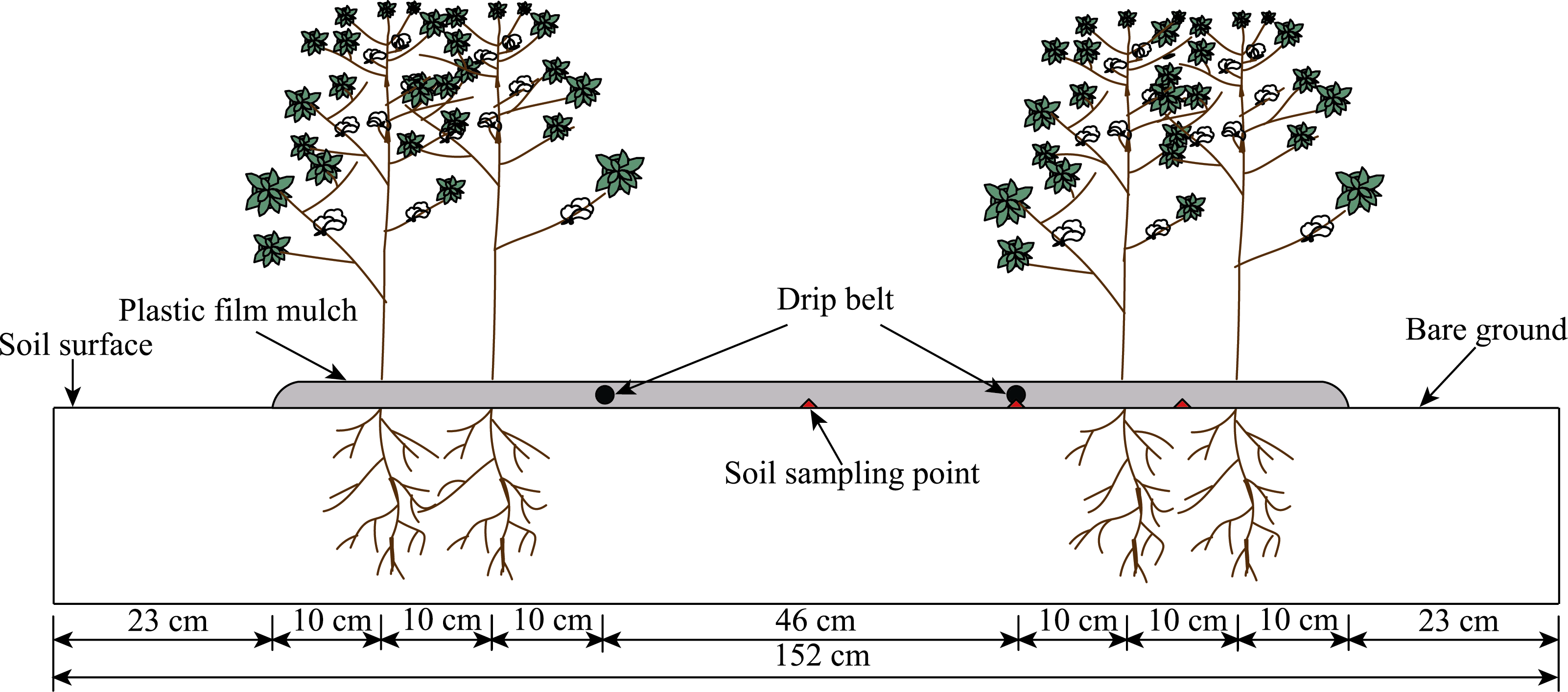 Fig. 2 Schematic diagram of cotton planting mode and sampling points in the field |