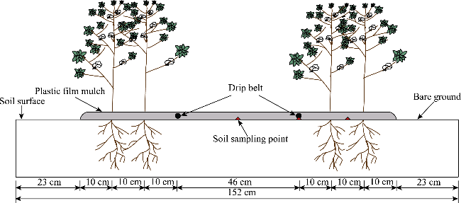 Key words: cotton yield; leaching; soil water; soil electrical conductivity; drip irrigation