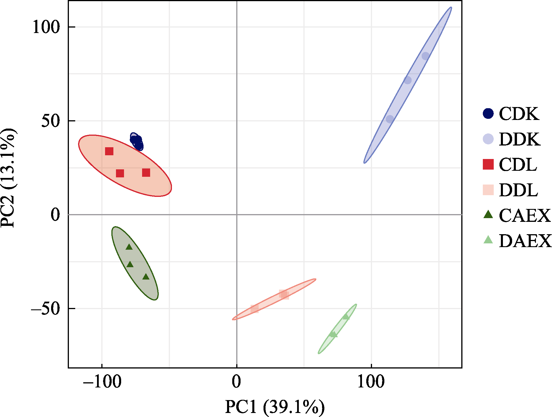 Note: Q30 is the percentage of bases with a mass value greater than or equal to 30, and the higher the value, the better the quality of the sequencing. GC content refers to the total proportion of guanine (G) and cytosine (C) bases in a DNA sequence, usually expressed as a percentage. DK, Dengkou County; DL, Dulan County; AEX, Aerxiang Village. CDK, CDL, CAEX are the control treatments of DK, DL, and AEX, respectively; DDK, DDL, and DAEX are the drought stress treatments of DK, DL and AEX, respectively. |