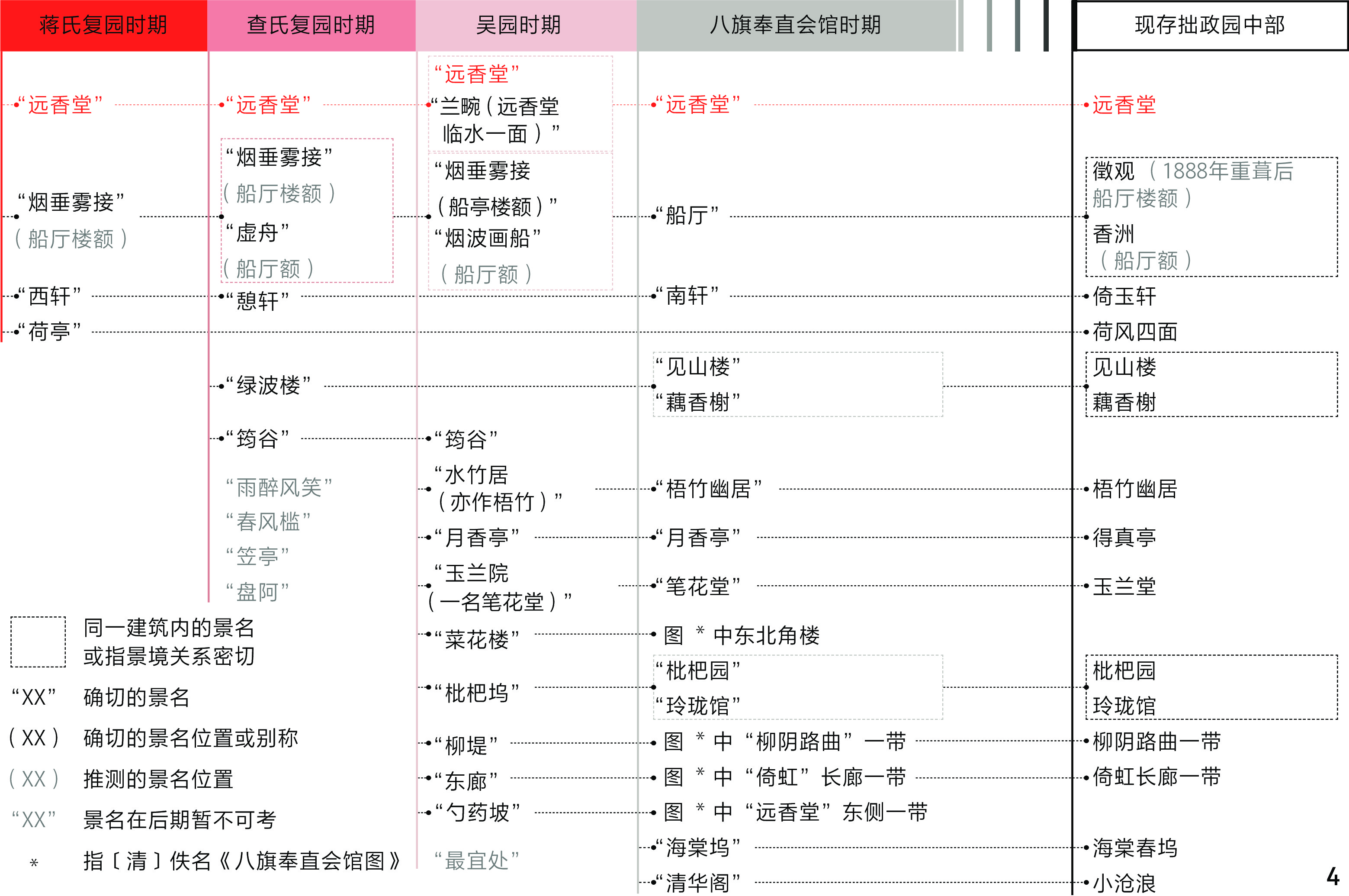 [Conclusion] The research reviews the research process, rethinks the methods of extracting features of the scenery-realm of historical gardens, and considers the approaches to understanding the restoration tradition of ancient Chinese gardens.