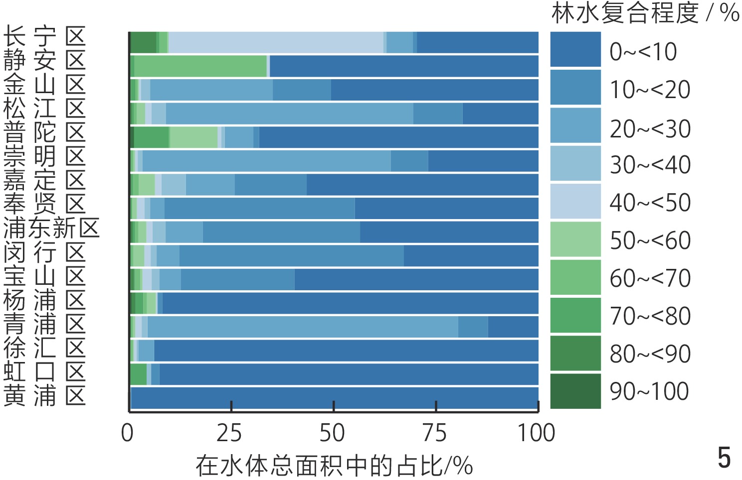 1)3类林水复合区域在空间分布上呈现显著差异,生态融合区、基础林水交界区和待恢复水林区的总面积分别为128.90、447.54和25.56 km2,占上海市水体总面积的19%、66%和4%。2)不同林水复合类型区域表现出差异化的动态特征,待恢复水林区表现出最高的动态性,生态融合区次之,基础林水交界区保持相对稳定。3)空间分布上,3类林水复合区域呈现显著的城乡异质性,远郊地区保有更多适宜营建和修复的土地资源,而中心城区虽紧邻主干河流,但因硬质驳岸等原因,林水复合程度明显较低。