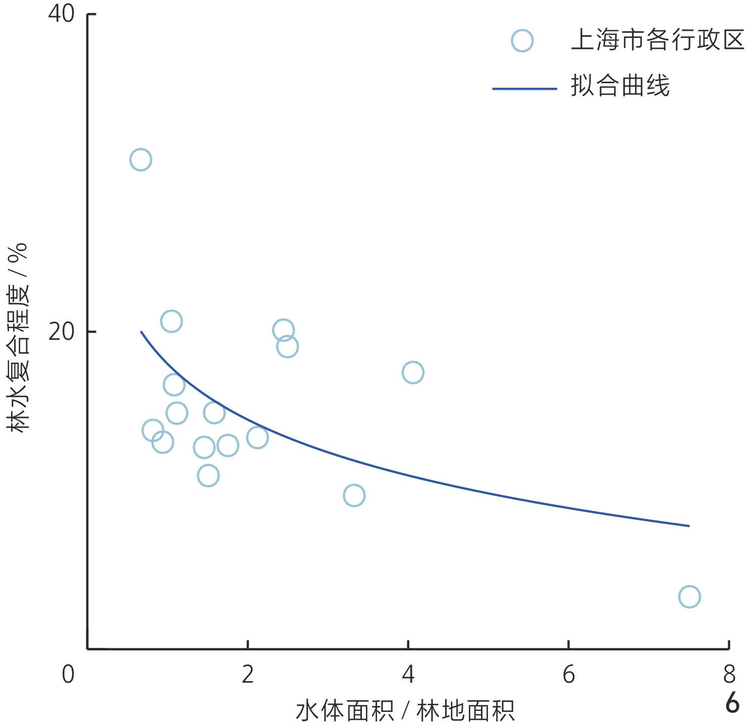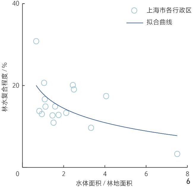 图6 水林面积比与林水复合程度的关系Fig. 6 Relationship between the water - forest area ratio and the degree of forest – water integration |