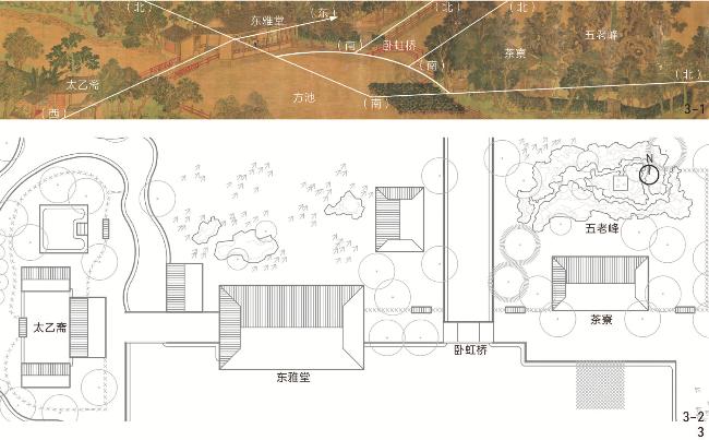 [Objective] The mid-16th century is a critical period in the transformation of Jiangnan gardens during the mid-to-late Ming Dynasty. This period is characterized by a gradual weakening of the connection between garden making and agricultural economy, the enhancement of social functions of private gardens, and the infiltration of social atmosphere of entertainment and extravagance into the life of literati. Based on clarifying the overall trend of the transformation of Jiangnan gardens, it is necessary to further explore specific changes in garden elements such as rockeries, waterscape, plants, and buildings by combining them with specific examples. The private garden of Xu Feng, a wealthy merchant from Suzhou, is representative of the newly constructed Jiangnan gardens in the mid-16th century. The scenery of this garden is depicted in Wen Zhengming’s Picture of a Famous Garden in Jinchang (“Jinchangmingyuantu”). This painting vividly reflects many garden design techniques that were popular during the Jiajing period and provides intuitive evidence to support the argument of the transformation of Jiangnan gardens in the mid-to-late Ming Dynasty. It also helps to form a clearer understanding of the typical artistic features of Jiangnan gardens in the mid-16th century. [Methods] The research method of mutual verification of literature and image is employed to reconstruct the garden depicted in the Picture of a Famous Garden in Jinchang. Combining visual and textual information to identify the correspondence between the painting and the Record of Zizhi Garden (Zizhiyuanji), in order to determine the orientation of buildings and the layout of garden. This process ultimately yields a partial plan of Xu Feng’s Garden, making the visual image of this renowned Jiangnan garden in the mid-16th century more intuitive. Furthermore, by analyzing the garden elements and design techniques based on the plan restoration of Xu Feng’s Garden, and comparing it with other Jiangnan gardens in the mid-16th century and its surrounding periods, the main trends in the transformation of Jiangnan gardens since the Jiajing period can be explored. [Results] The Picture of a Famous Garden in Jinchang does not include the panorama of Xu Feng’s Garden, and Wen Zhengming chose to depict the core area of the garden. This painting depicts scenic spots such as the garden gate, Five Old Men Peaks (“Wulaofeng”), teahouse, Wohong Bridge (Wohongqiao), square pool, Dongya Hall (“Dongyatang”), Taiyi Study (“Taiyizhai”), curving stream, Qianxin Railing (“Qianxinjian”), Baixue Tower (“Baixuelou”), and Qingxiang Pavilion (“Qingxiangting”) from right to left. This garden was renowned for its luxurious style and served as a place for celebrities to engage in social activities. The garden elements such as rockeries, waterscape, plants, and buildings exhibit artistic features that are distinct from the traditional literati gardens before the mid-16th century, while also showing continuity with the design techniques from the mid-16th century to the early 17th century. The Five Old Men Peaks, which rose during the Jiajing period, continued to be popular until the late Ming Dynasty. Ornamental plants detached from agricultural economy reflected the changes in the livelihood of garden owners from farming to commerce. Buildings with increasing number and diverse forms were gradually replacing plants as the main scene of gardens. In addition, this painting shows the combination of square pool and curving stream, providing valuable visual documentation for distinguishing the differences in waterscape design during the mid-to-late Ming Dynasty. [Conclusion] The comparison of Xu Feng’s Garden with other Jiangnan gardens in the mid-16th century and its surrounding periods reveals the major trends in the transformation of garden making since the Jiajing period. The application of standardized techniques in rockery construction and waterscape design reflects the gradual maturation of garden making after the mid-16th century, indicating that garden designers had gradually established a widely recognized and used design paradigm after long-term exploration. As a representative of the design paradigm at that time, the combination of the Five Old Men Peaks and square pool reveals the convergence of garden designers’ aesthetic concepts within a specific historical period. The functional shift of plants and buildings can be seen as a manifestation of the transformation of social trend from frugality to luxury in the mid-to-late Ming Dynasty. In the early 16th century, Jiangnan gardens were primarily used for the daily life and literary gatherings of literati, while also accommodating self-sufficient agricultural production. The development of commodity economy highlighted the social attributes of gardens as venues for social interaction, stimulating garden owners’ attention to the aesthetic functions of their gardens. The transformation of Jiangnan gardens in the mid-16th century originats from the combined effects of social evolution and artistic development. In subsequent research, extending case studies to group surveys can help to macroscopically grasp the characteristics of Jiangnan gardens in the mid-to-late Ming Dynasty.