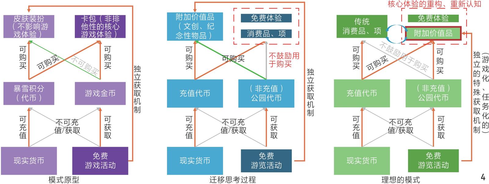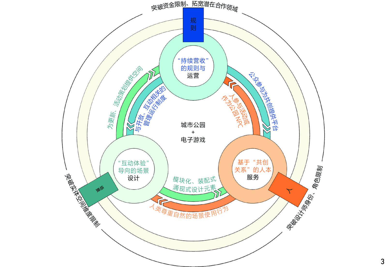 | 兼顾营收和公益性 | 平衡良好的F2P游戏 | 包括全体玩家共享的体验、免费或付费的附加体验,以及付费玩家的独享体验; 付费与免费体验差距较小,而且可以通过多种机制调节 | “持续运营”公园 | 引入附加体验体系,弱化消费行为的负外部性;借鉴游戏思维,营造新鲜感和归属感;适当放宽建设控制指标 |