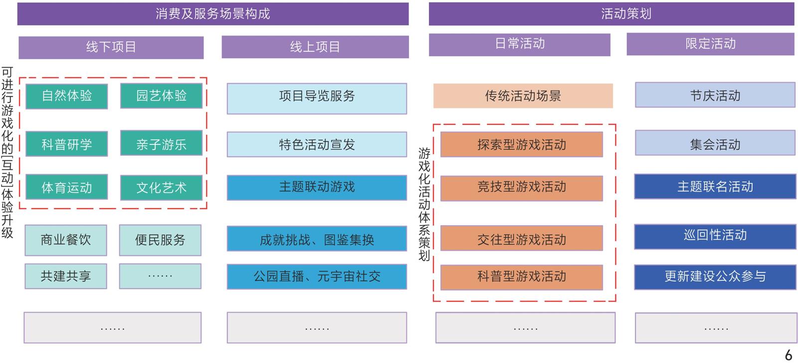 【目的】受城市公园自身条件及资金、政策等因素的制约,目前的公园运营策略很难充分利用绿地的潜在价值,实现更理想的营收能力。借助游戏化方法可为公园提供数字经济运营的新思路,挖掘城市公园的多元化价值。【方法】首先,分析公园运营发展的限制与机遇;其次,选取电子游戏这一数字经济与游戏化方法结合的典型领域,与风景园林领域进行对照;再次,运用本体论思维,梳理风景园林领域的游戏化方法体系;最后,用类比和迁移的方法建立游戏化的公园持续运营体系框架。【结果】提出3种风景园林领域的游戏化方法:互动体验导向的场景设计、基于共创关系的人本服务、持续营收的规则与运营。构思游戏化的公园运营体系:2种数字经济模式迁移思路、附加体验及价值品体系、消费服务场景及活动策划方向、支撑与保障体系建设等。【结论】1)从本体论出发的游戏化方法,涵盖了风景园林设计、服务、运营领域的游戏化应用场景,与既有应用领域互补,并支撑游戏化的公园运营体系建构。2)该运营体系有望促进公园绿地的经济、数据、文化等多元价值的挖掘。3)上述方法和体系有待更广泛的实践论证,并需关注过度商业化、文化审查等方面的政策风险。