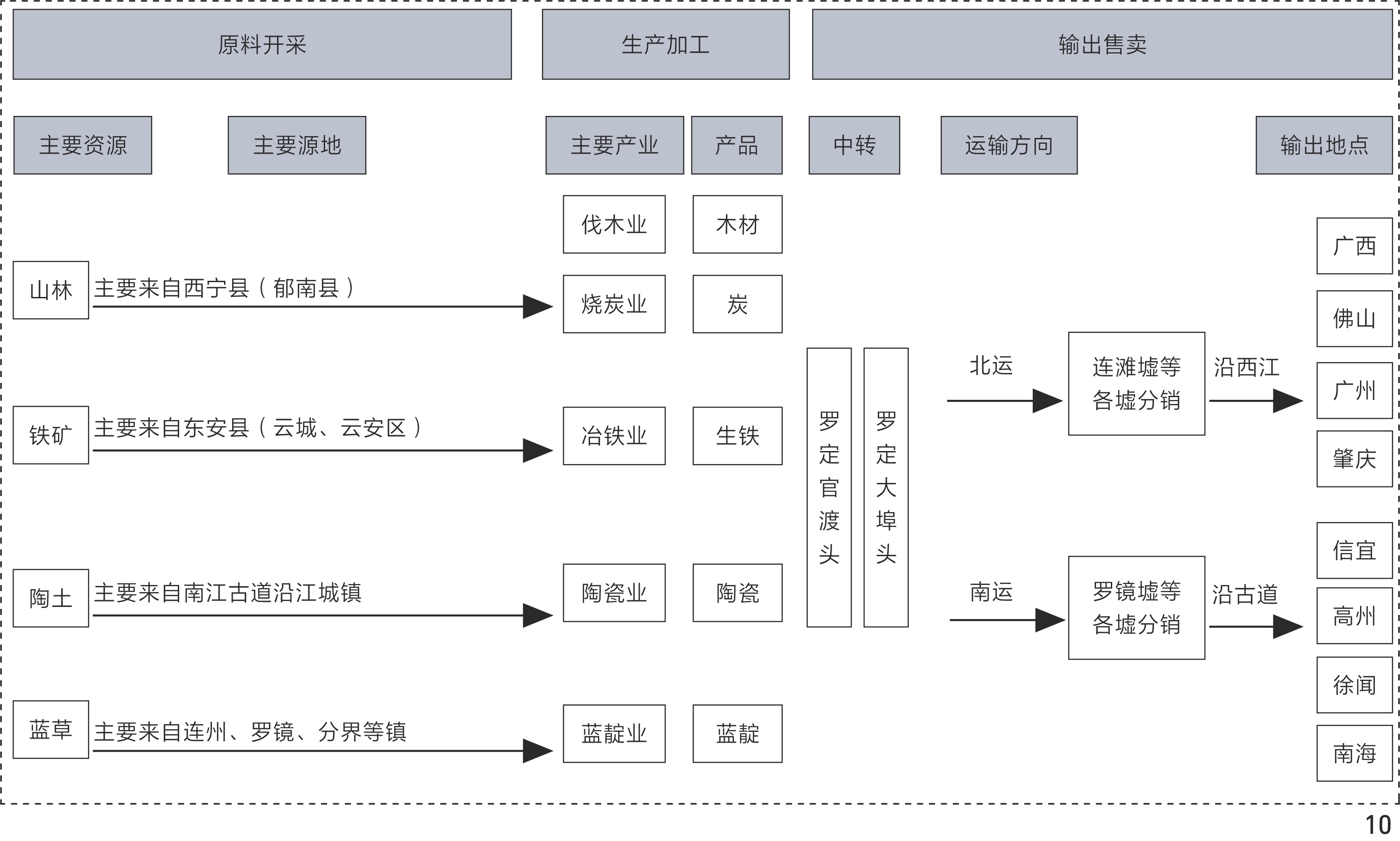 | 圩镇的圩集 | 码头—商业街—圩镇中心 | 骑楼 | 连滩圩集 | ① |