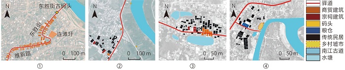 | 驿道两侧线性分布商贸建筑 | 三间两廊或底商上住的单开间店铺 | 村头村市集 | ③ | |