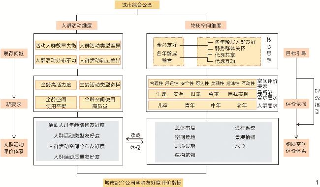 This research constructs a quantitative evaluation method for the all-age friendliness of comprehensive parks from the two dimensions of crowd activity and physical space. First of all, the evaluation model and method for all-age friendliness of crowd activities in comprehensive parks based on activity characterization are constructed. Next, the evaluation indicator system and method for all-age friendliness of physical space based on the relationship between the needs of all-age people and the elements of park planning and design are constructed. The evaluation system for all-age friendliness of crowd activities and that for all-age friendliness of physical space complement each other. As a result, a relatively complete evaluation method for all-age friendliness of comprehensive parks is constructed.