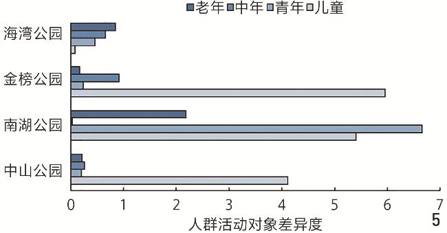 表3 各公园的各年龄层人群活动种类Table 3 Activity types of different age groups in each park |