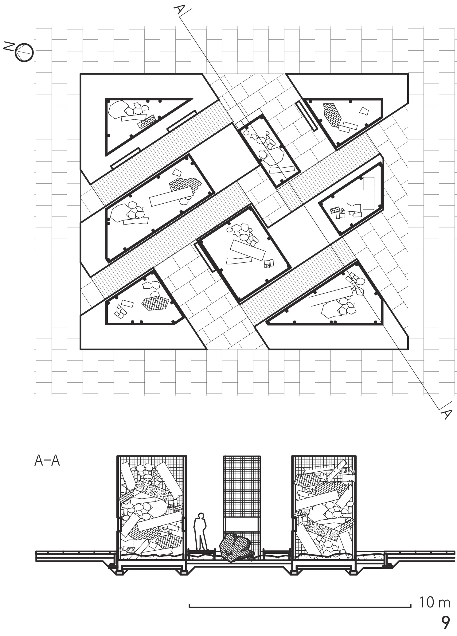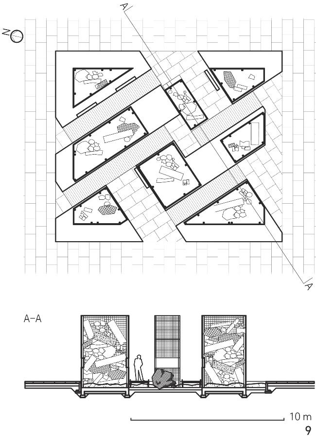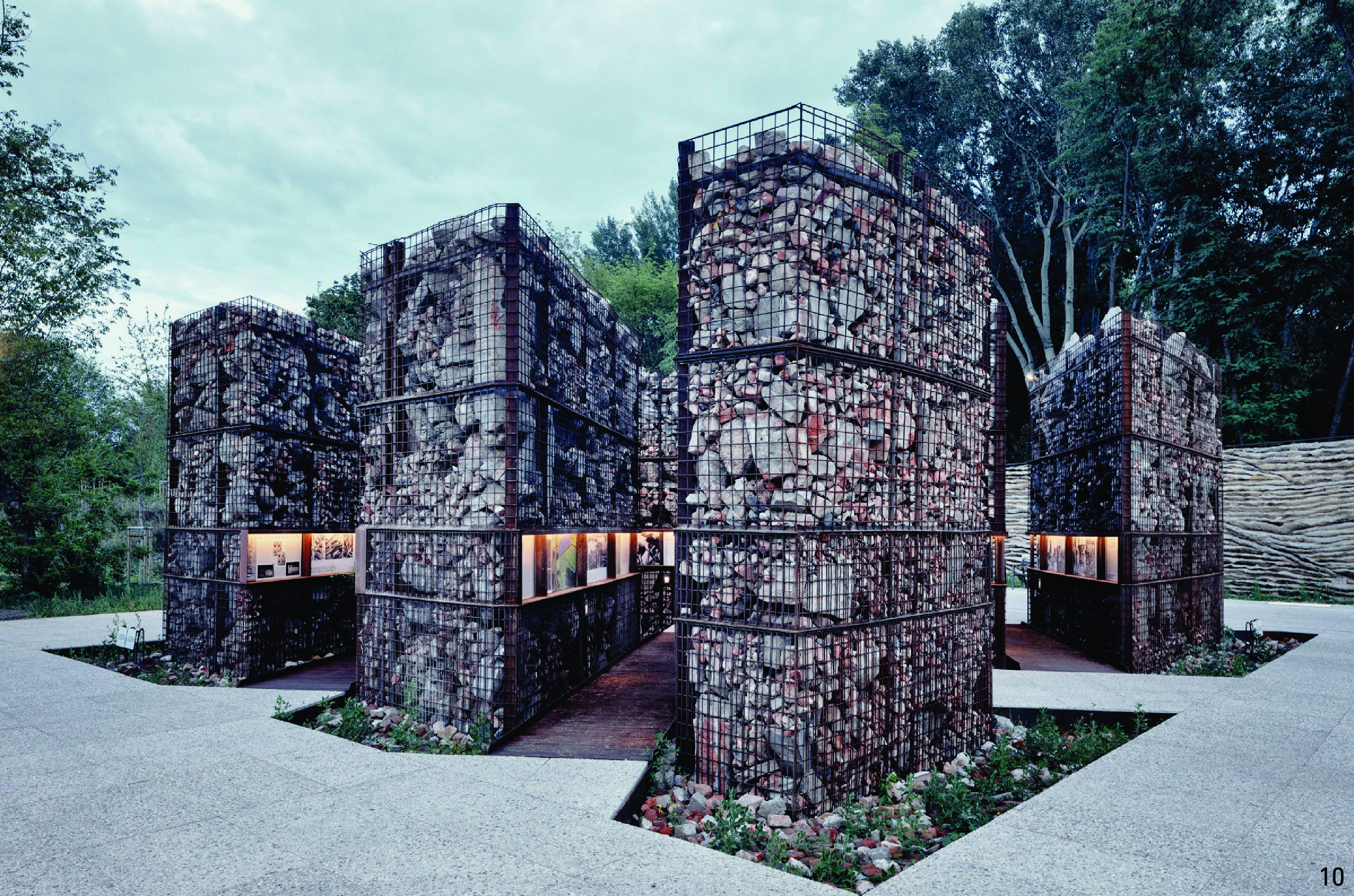 图10 位于石碑园角落的格宾笼,象征着战后华沙中的百万分之一瓦砾Fig. 10 The corner gabion in the Lapidarium, symbolizes just one-millionth of rubble from post-war Warsaw |