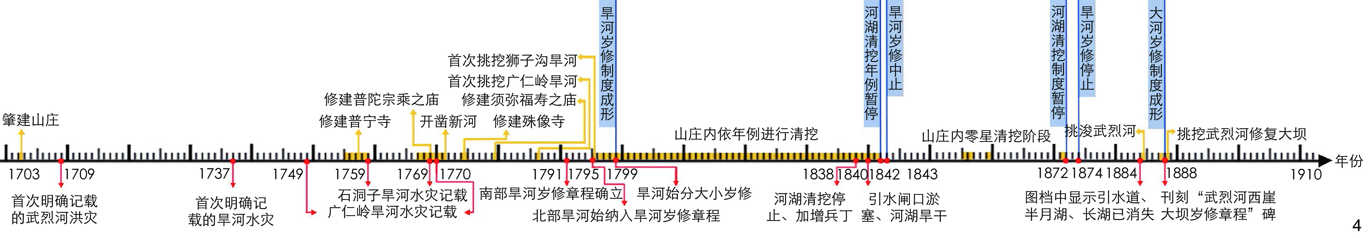 [Objective] As the largest royal garden in the world today, the Mountain Resort is renowned for its classic natural landscape construction. From the initial construction of the Mountain Resort in 1703 to the collapse of Qing Dynasty in 1911, the water systems inside and outside the Mountain Resort underwent significant changes. However, the historical process of water system changes inside and outside the Mountain Resort hasn’t been clearly sorted out, and the causes thereof haven’t been researched in depth. These deficiencies have brought obstacles to the comprehensive understanding of the Mountain Resort, and also brought challenges to the recognition of multiple values of landscape heritage.