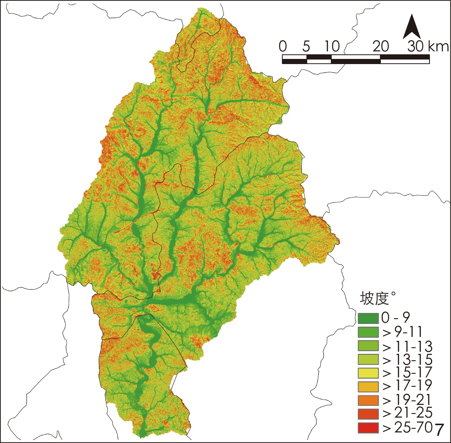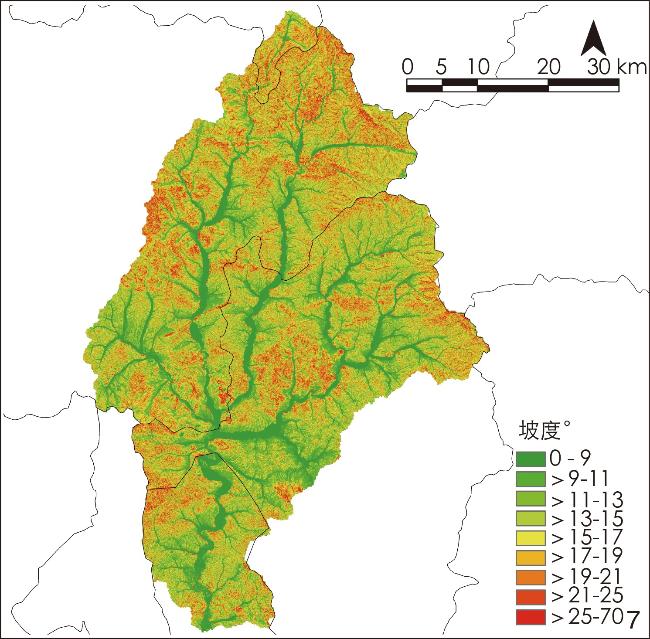 | 坡度/° | 面积/km2 | 流域内坡度占比/% | 耕地面积/km2 | 年土壤流失量/t | |