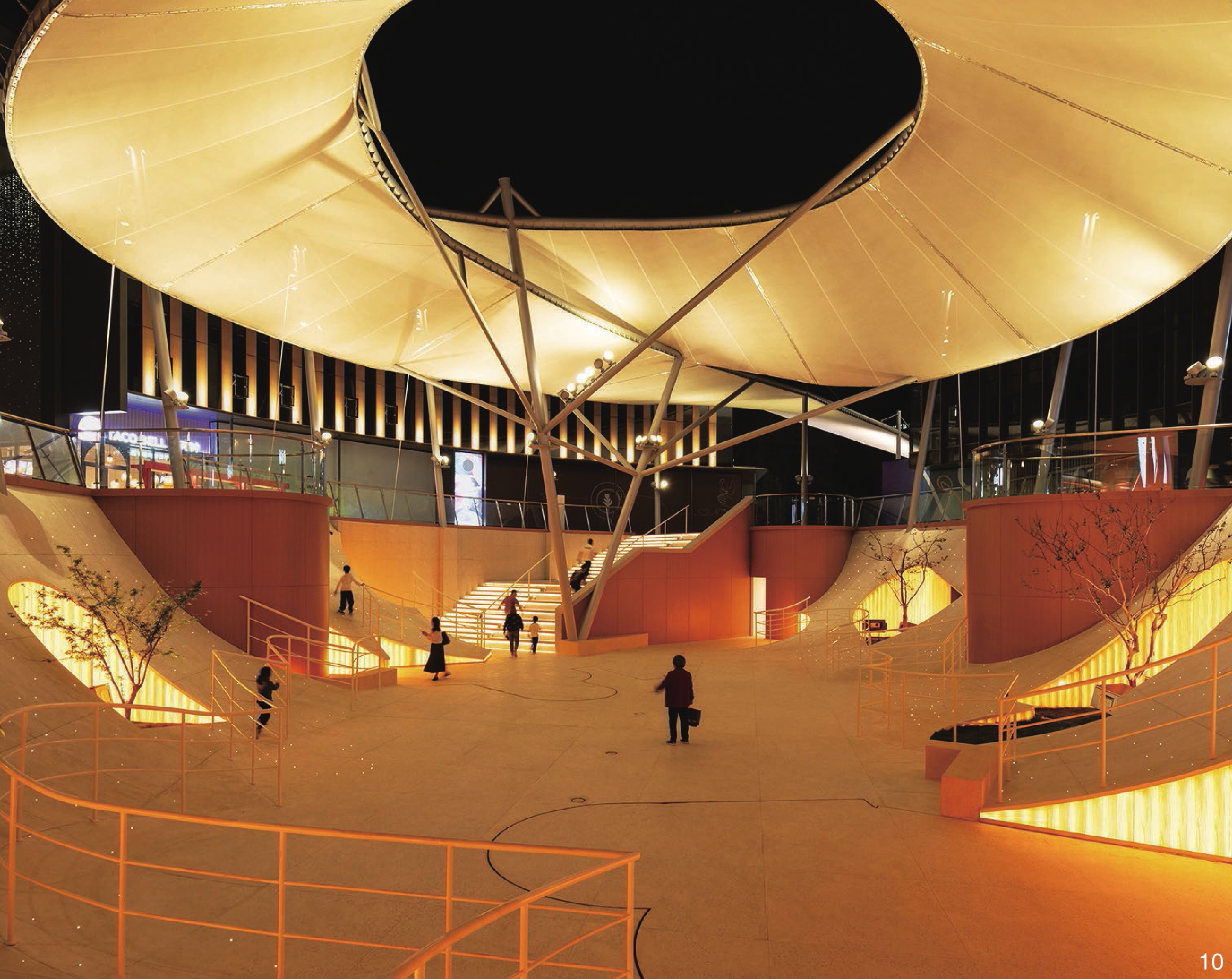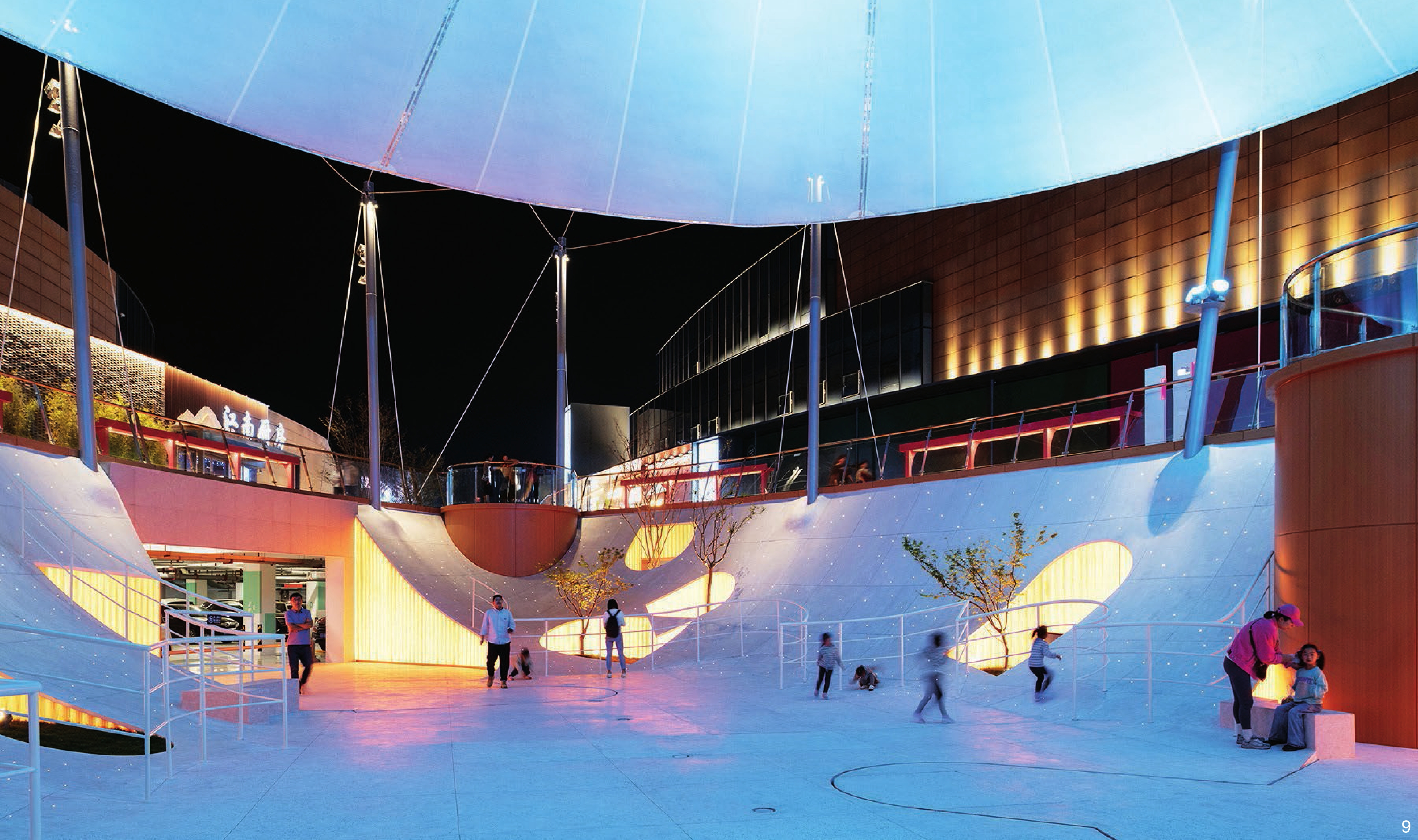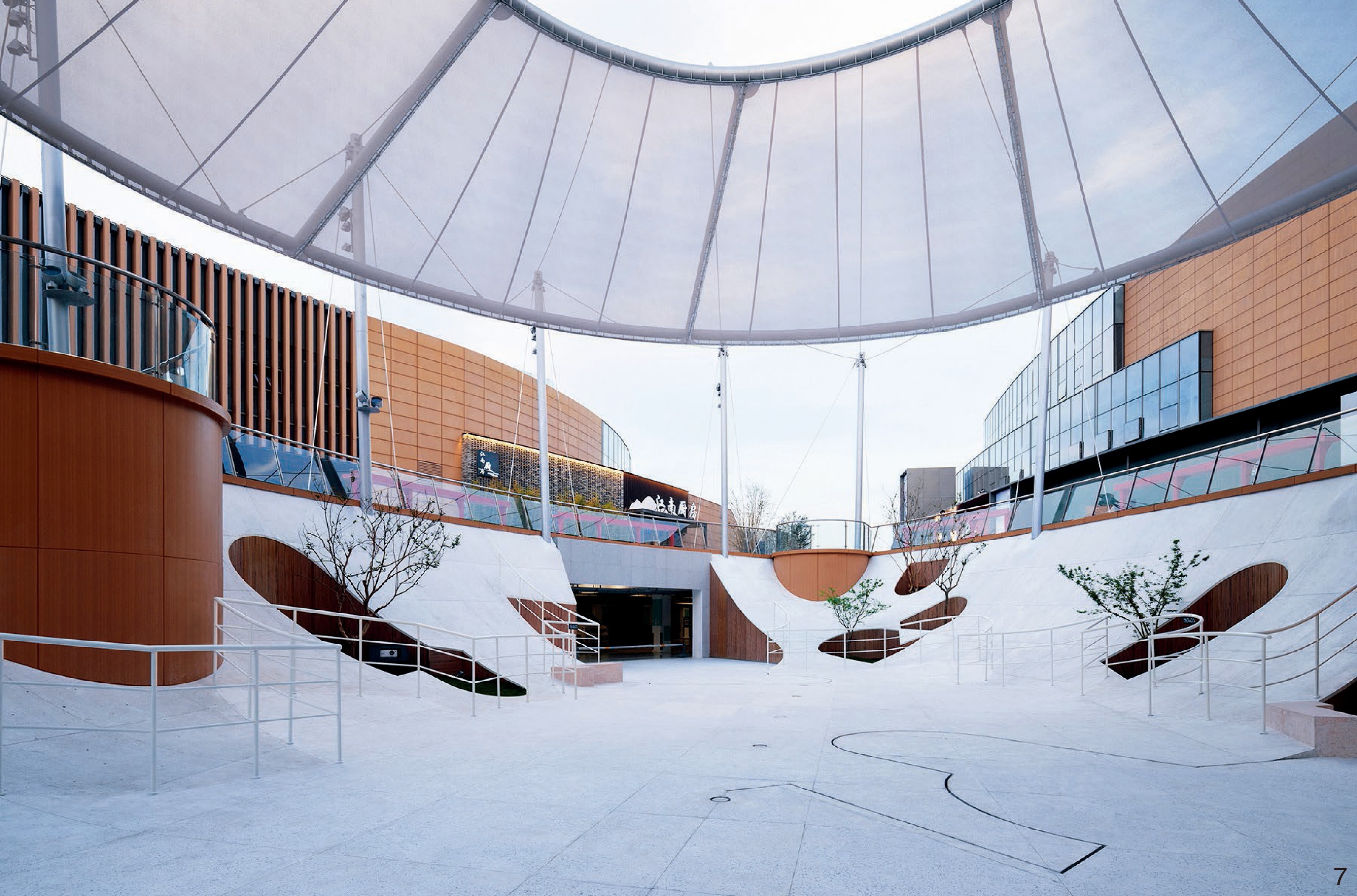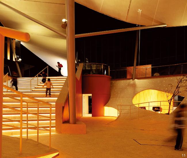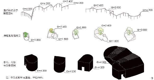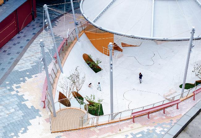 图7 膜结构与地景花园共同组成立体的连续景观Fig. 7 A three-dimensional continuous landscape formed by the floating membrane structure and the landscape gardens |