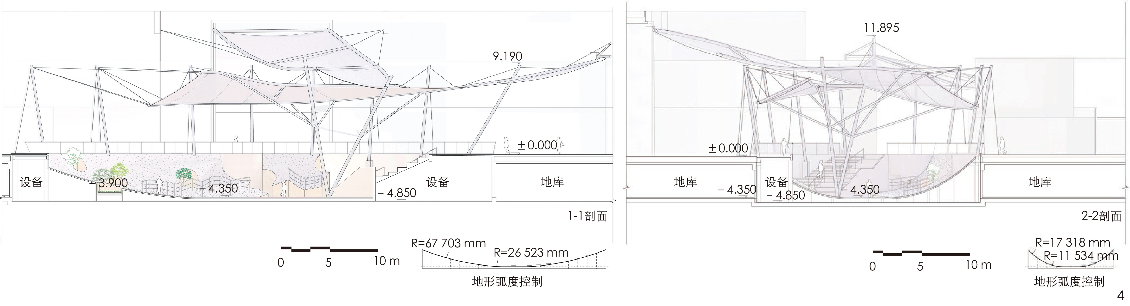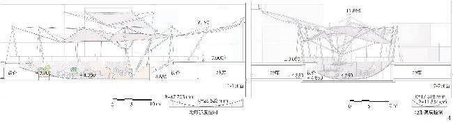 图8 地景花园的入口与膜结构的延伸形态Fig. 8 Entrance of the landscape gardens and extended form of the membrane structure |