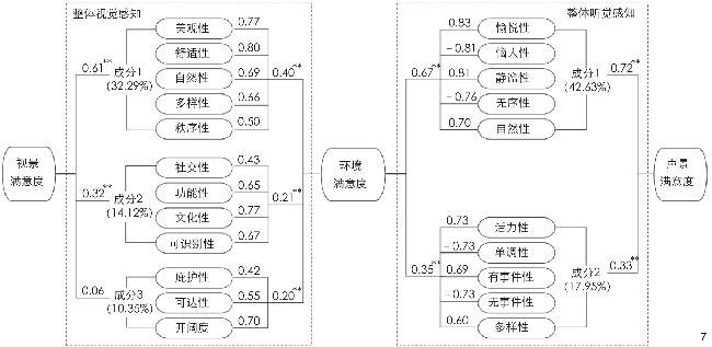 表2 视听觉感知与视声景满意度相关性计算结果Tab. 2 Results of correlation between audio-visual perception and visual landscape satisfaction |