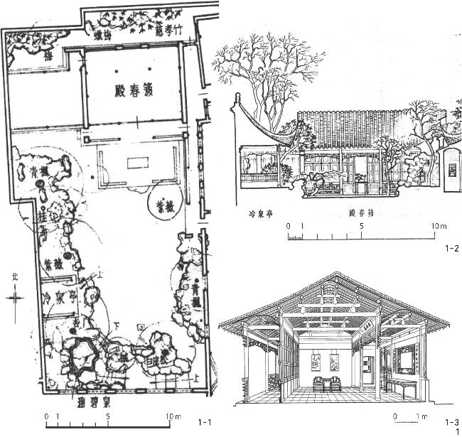 | 5 | 《苏州园林》(1999年苏州园林设计院出版) | 总平面图1张、剖面图2张(殿春簃建筑内装修立面1张、东西向北剖立面图1张) | |