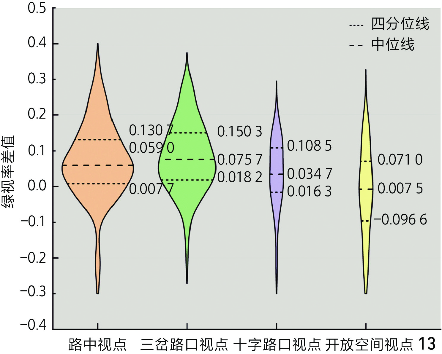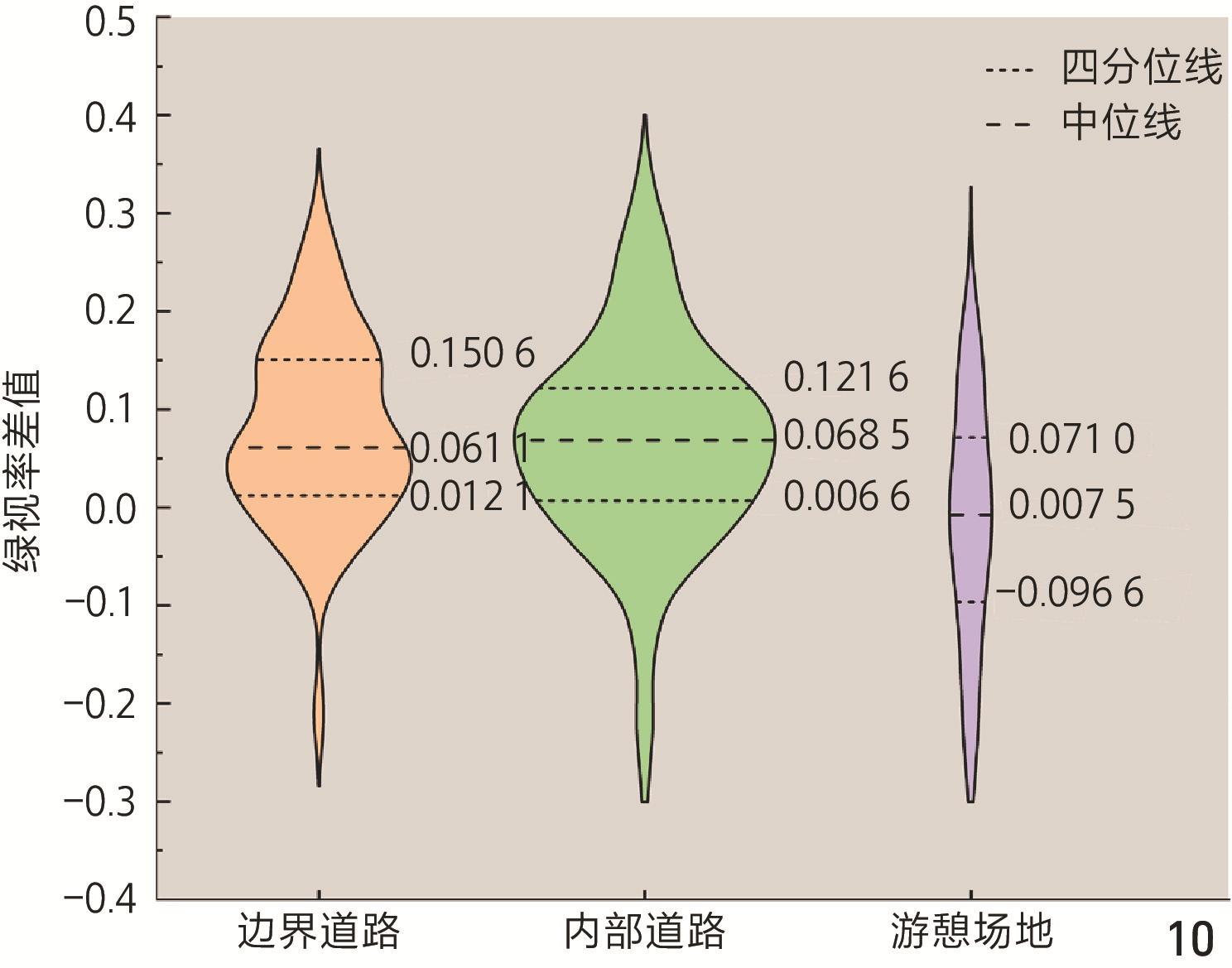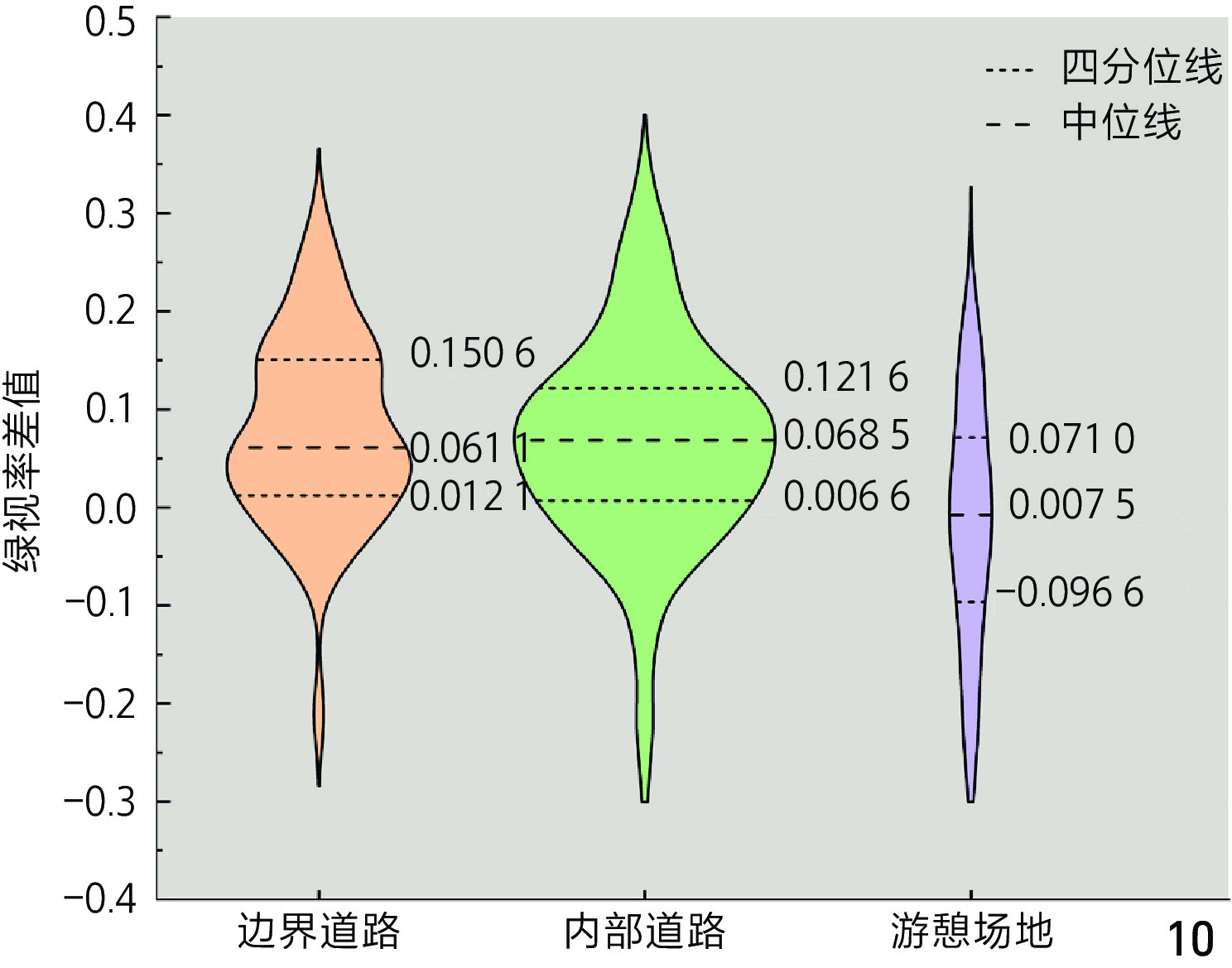 图10 基于空间功能分异的绿视率差值分布特征Fig. 10 Distribution of GVI difference across spatial functional differentiations |