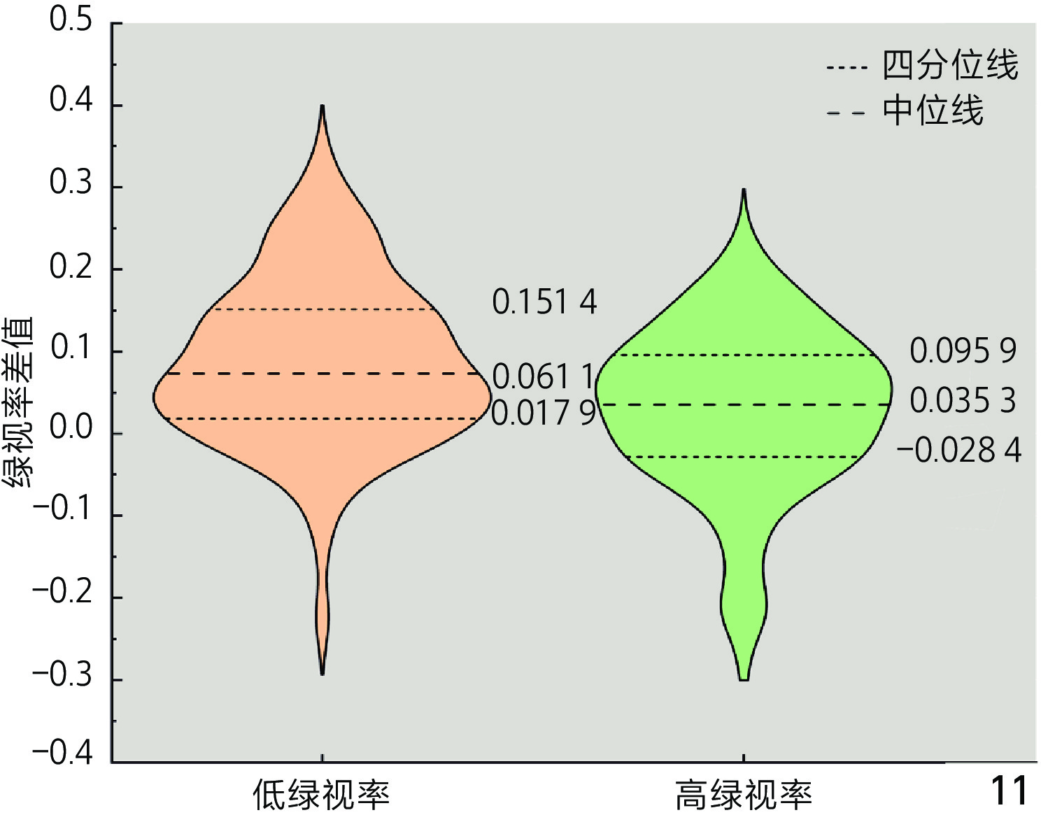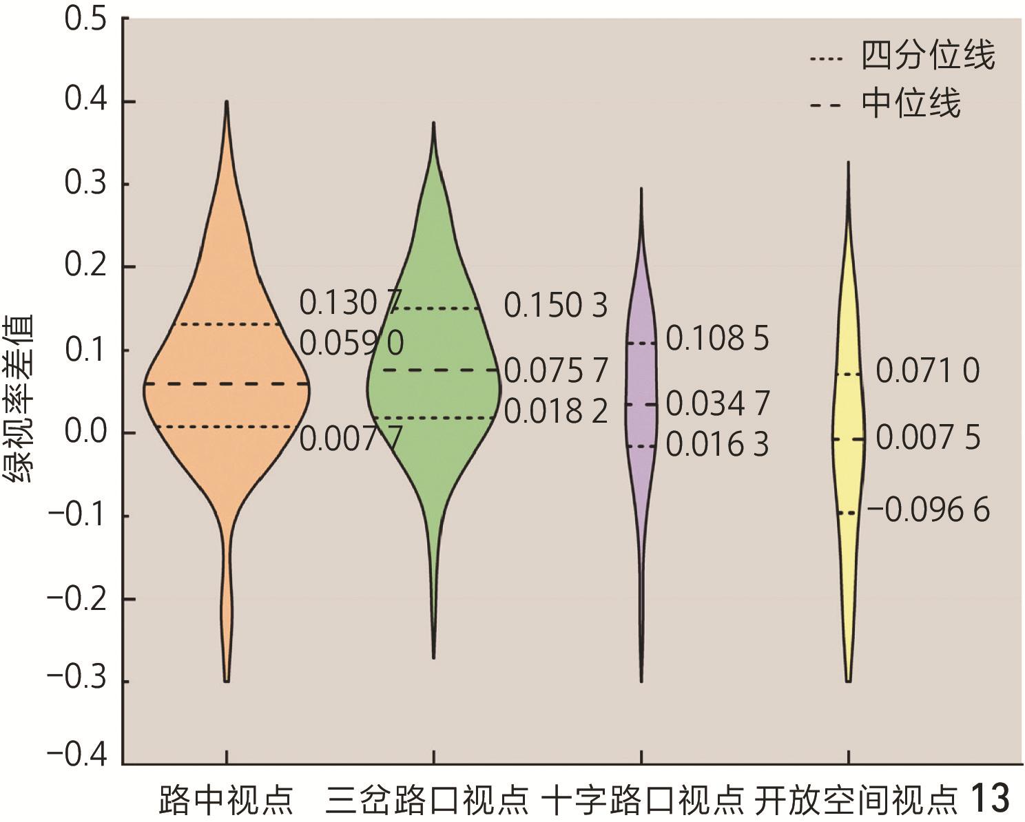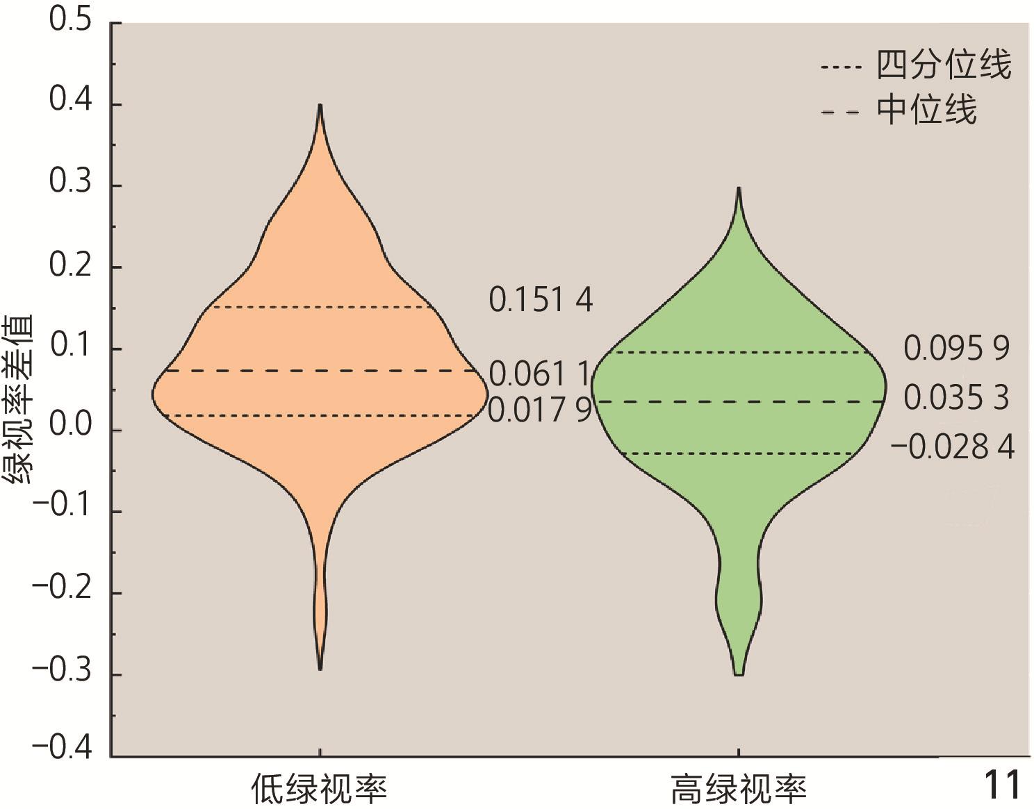 图10 基于空间功能分异的绿视率差值分布特征Fig. 10 Distribution of GVI difference across spatial functional differentiations |