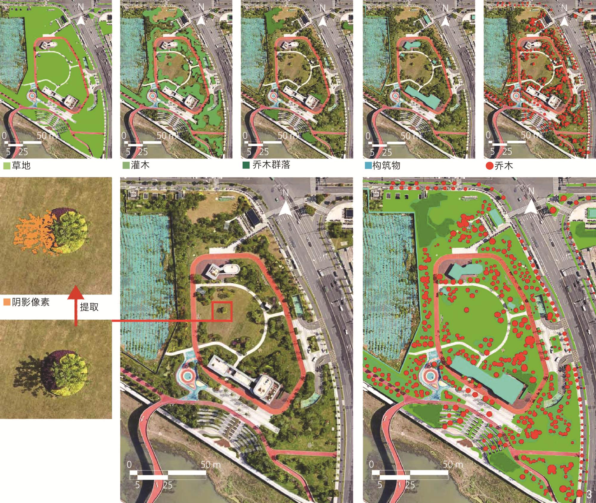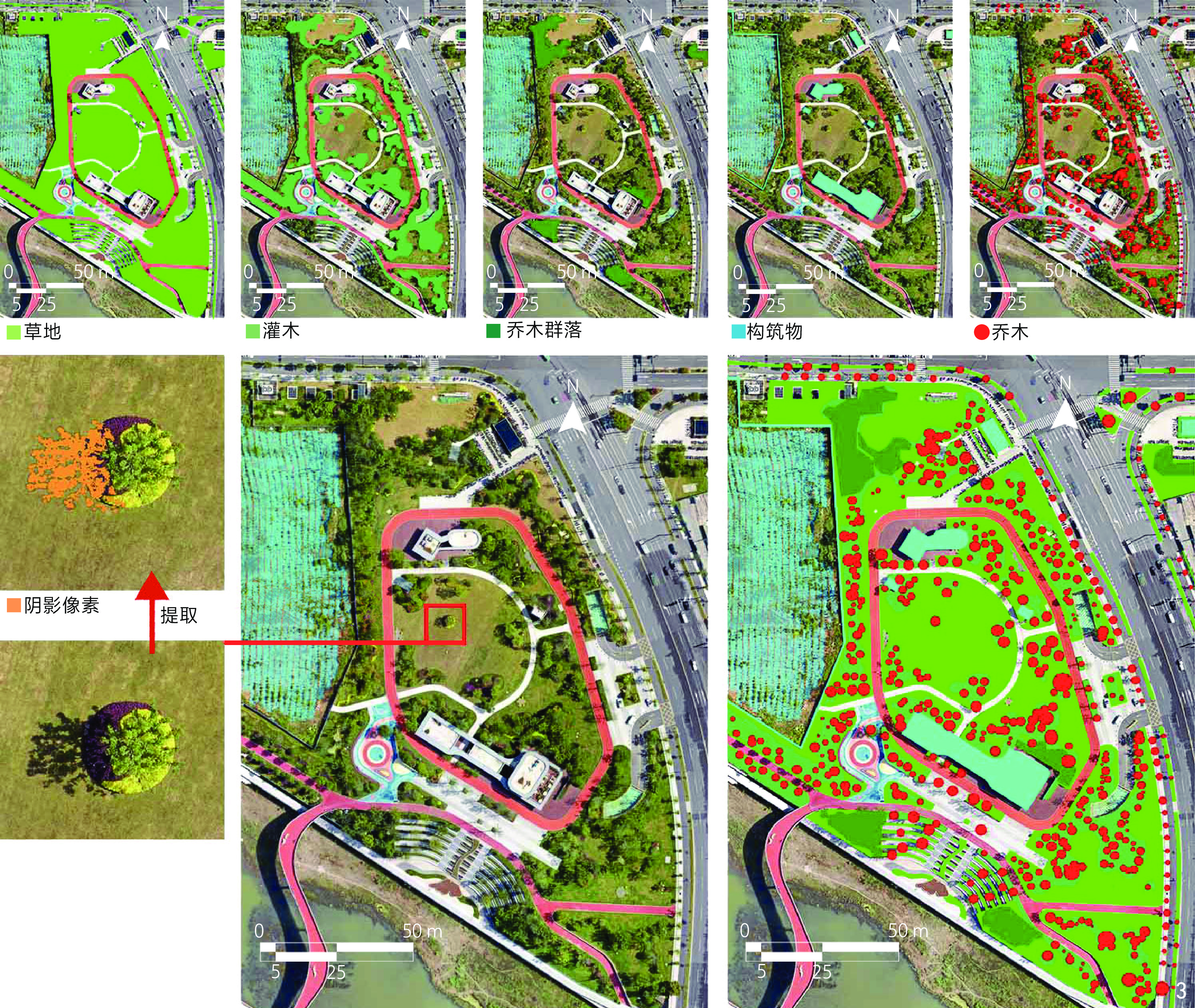 3、利用易获取的无人机与卫星的正射影像,显著降低了对实地数据的依赖与成本,为构建大范围绿地视觉数据库提供支撑,助力美丽中国建设与人本绿化评价。